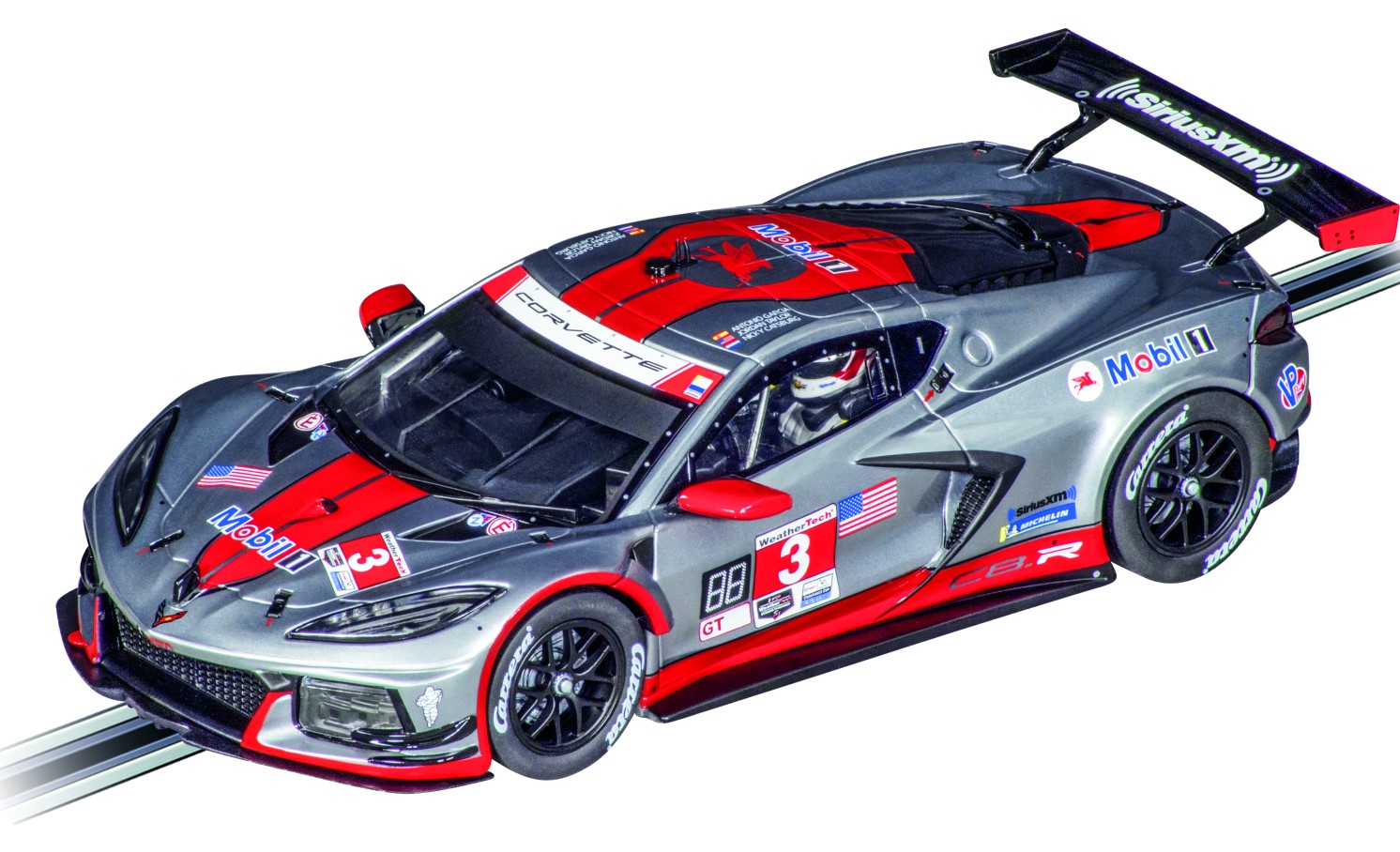 Chevrolet Corvette C8.R 'Sebring, No.3' DIGITAL 124 Silber-Roter GT-Champion Front- und Rücklicht sowie Bremslicht und Blinklicht Original Chevrolet-Lizenz Maßstab 1:24 Ab 10 Jahren Die Schönheit auf der Rennstrecke: Corvette C8.R Die Corvette Racing Chevrolet C8.R ist ein wahrer Champion. Das Auto gilt als eines der stärksten GT-Fahrzeuge aller Zeiten. Mit der Startnummer 3 dominierte die Corvette das erste Drittel des Rennens am Sebring in der GTLM-Klasse und führte dabei die ersten drei Stunden das Verfolgerfeld. Ausgelöst durch eine Vollbremsung und einen Boxenstopp musste sie sich jedoch dem BMW Team RLL BMW M8 GTE mit der Startnummer 25 geschlagen geben. Am Ende stand trotzdem der sehr gute zweite Platz. Mit der Corvette C8.R zeigst du im Rennduell dein Fingerspitzengefühl und begeisterst die Zuschauer mit deinen Skills. Spannende Rennen mit dem amerikanischen Champion Das Carrera DIGITAL 124 Chevrolet Corvette C8.R No.3 Slotcar begeistert durch Frontlicht, Rücklicht, Bremslicht und sogar Blinklicht sowie durch originalgetreue Verarbeitung, dank der originale Chevrollet-Lizenz. Die Corvette im Maßstab 1:24 ist individuell codierbar, digital steuerbar und bietet unverkennbaren Fahrspaß für alle.