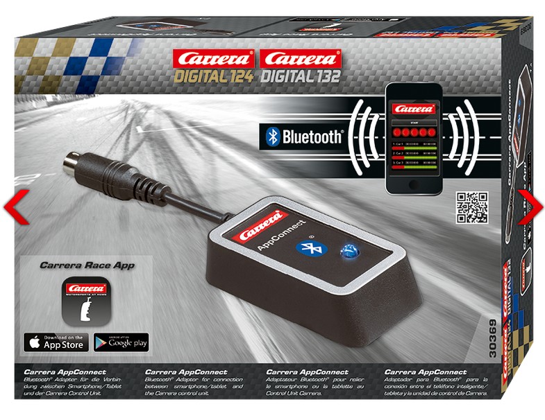Legendäres Rennvergnügen und modernste Technik gehen bei Carrera Hand in Hand. Mit dem Carrera AppConnect kannst du deine DIGITAL 124- und DIGITAL 132-Rennstrecken direkt mit dem Smartphone oder dem Tablet vernetzen. Einfach den Bluetooth Adapter an die Control Unit der Carrera-Rennbahn anschließen, Carrera Race App im App Store (iOS) oder bei Google Play (Android) kostenlos herunterladen und den Rennspaß der Zukunft genießen! -----