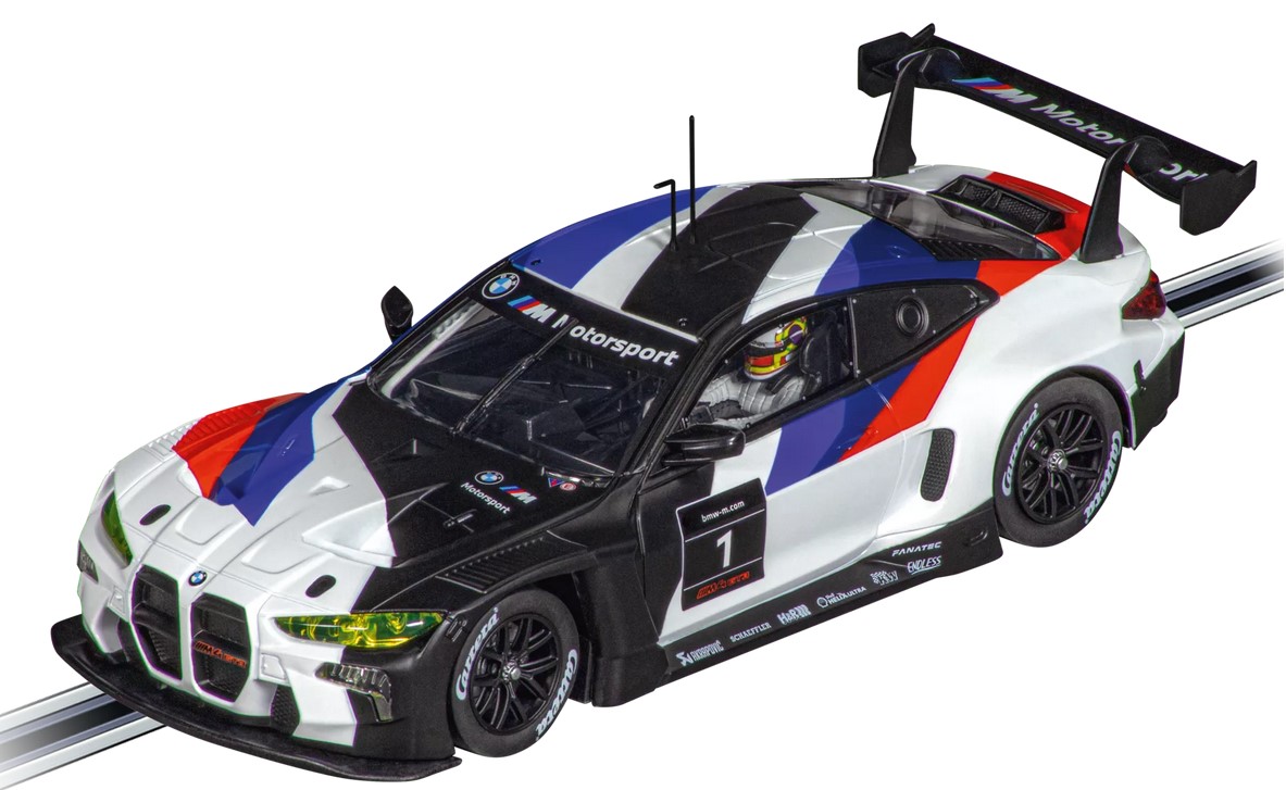 Im Carrera DIGITAL 124 "Start your Engines" -Set gibt der rasante BMW M4 GT3 sein Vollgasdebut gleich in zwei coolen Varianten! Der BMW M4 GT3 ist das neueste Spitzenmodell für den Motorsport des bayerischen Autobauers und lädt Autoliebhaber zum Träumen ein. Mit seiner markanten Front war der BMW M4 GT3 'BMW M Motorsport, No.1' im schnittigen schwarz-weißen Design mit blauen und roten Highlights 2021 bei verschiedenen Rennen im realen Testeinsatz. Aber auch in der Welt der immer beliebteren virtuellen E-Sim Rennen ist der coole BMW M4 GT3 bereits vertreten: prominentes Beispiel ist seine Teilnahme an der Digitalen Nürburgring Langstrecken Serie, wo sich gleich vier M4 auf den ersten vier Plätzen etablieren konnten.