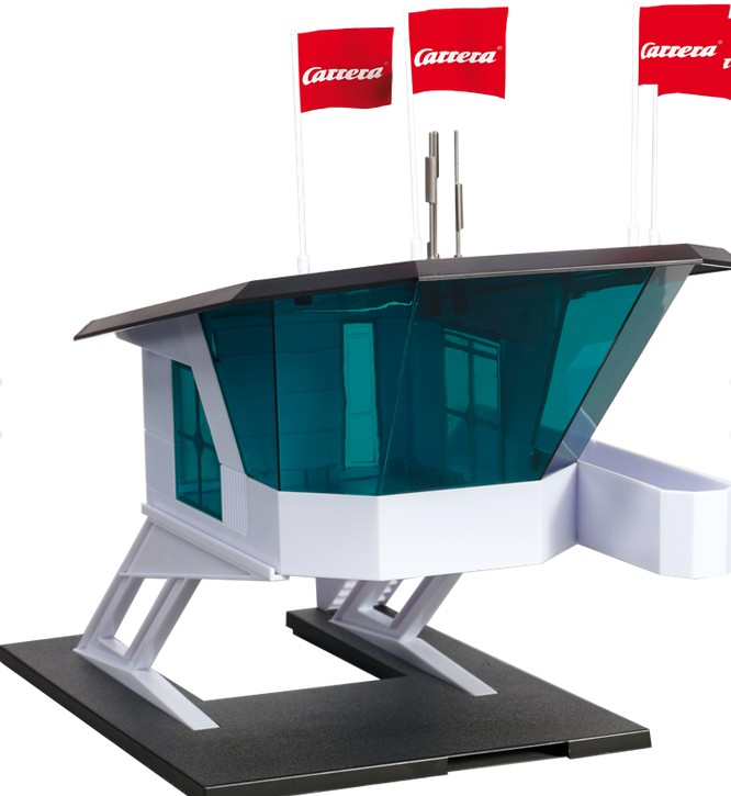 Kombinierbar mit Position Tower (30357) und Boxengasse (21104). Balkon wechselseitig montierbar. 44,2 x 32,6 x 22 cm.