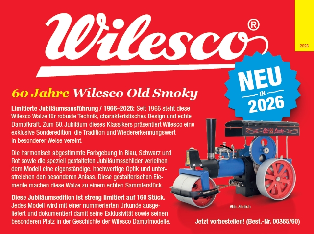 Seit 1966 steht die Wilesco Walze für robuste Technik, charakteristisches Design und echte Dampfkraft. Zum 60-jährigen Jubiläum dieses Klassikers präsentiert Wilesco eine exklusive Sonderedition, die Tradition, Wiedererkennungswert und Sammlerleidenschaft in besonderer Weise vereint.