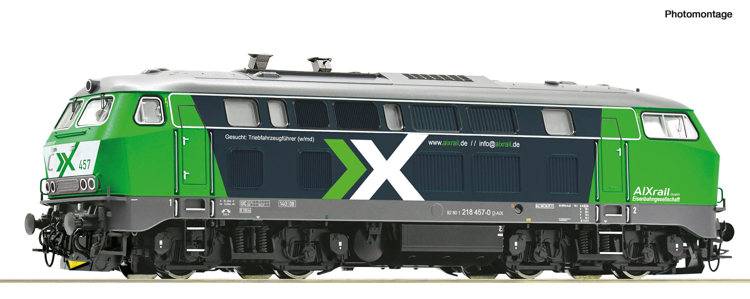 Diesellokomotive 218 457-0 (NVR Nummer: 92 80 1218 457-0 D-AIX) der AIXrail GmbH Aachen, für die Epoche 6.