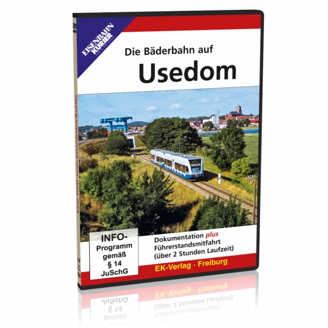 Die Bäderbahn auf Usedom, inklusive Führerstandsmitfahrt: Swinemünde - Wolgast-Hafen. Ca. 58 Minuten Dokumentation + ca. 78 Minuten Führerstandsmitfahrt. Am Ende des 19. Jahrhunderts wurden auf Usedom die ersten Gleise bis Heringsdorf verlegt. Seit 1911 gibt es zur Erschließung der Ostsee-Bäder eine Eisenbahn entlang der Küste bis zum Bahnhof Wolgast-Fähre. Angeschlossen war die Strecke bis 1945 über Ducherow und Swinemünde. Die politische Nachkriegsordnung ließ eine Inselbahn entstehen, die nur über die Wolgaster Fähre erreichbar war. Wir haben in Geschichtsbüchern geblättert und lassen in vielen alten Szenen die Zeit der mit der V 100 bespannten Züge und die der Ferkeltaxen wieder aufleben. Fahren Sie mit in den heutigen Triebwagen der Baureihe 646 und begleiten Sie uns in die verträumten Badeorte oder nach Peenemünde. Bonus: Führerstandsmitfahrt Swinemünde – Wolgast-Hafen (ca. 78 Minuten).