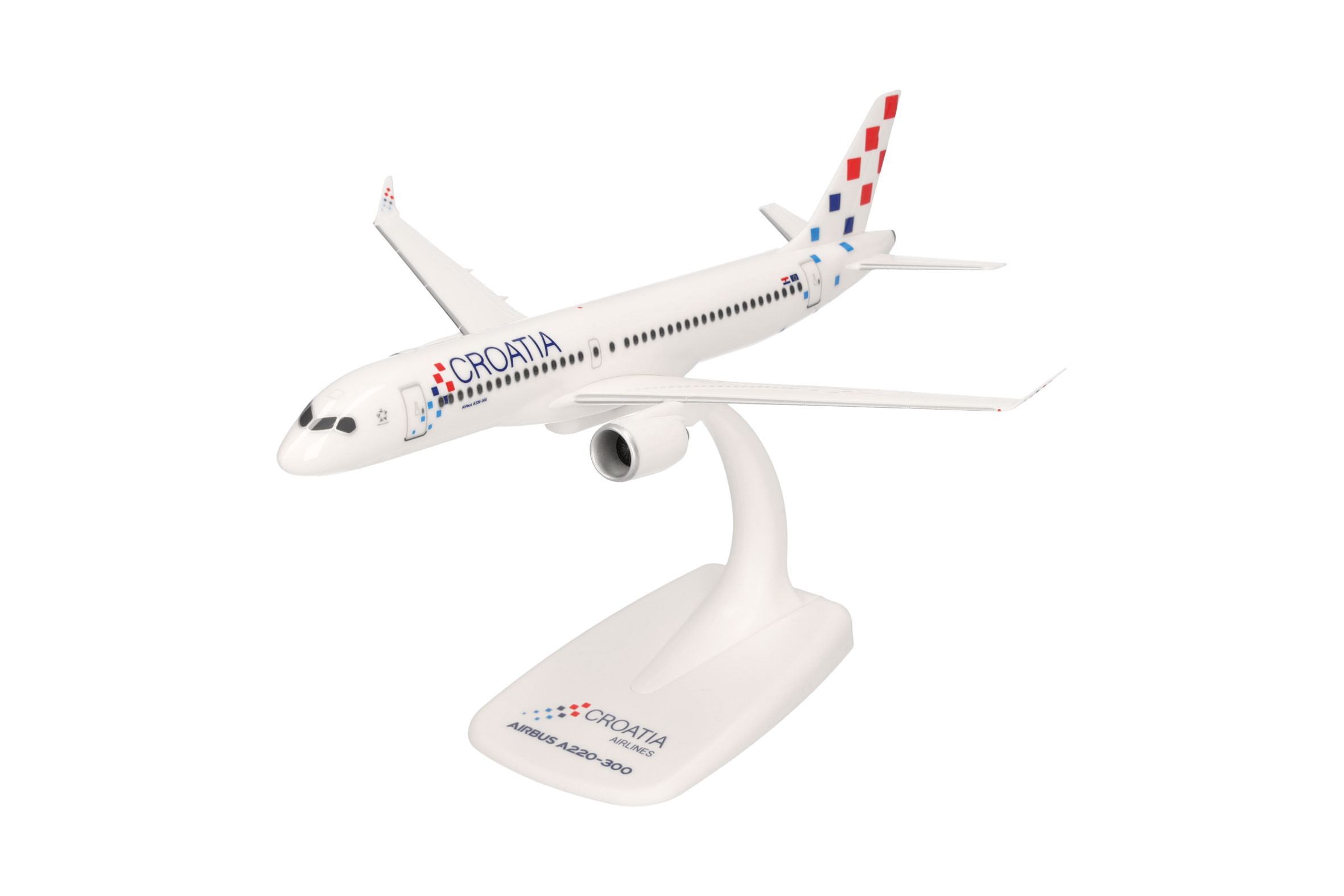 Im Juli 2024 erhielt die kroatische Fluggesellschaft ihr erstes von insgesamt 14 bestellten Exemplaren des Airbus A220. Der erste Linienflug führte aus historischen Gründen von der kroatischen Hauptstadt Zagreb nach Frankfurt: 1992 führte der erste internationale Flug der damals neu gegründeten Airline ebenfalls zu dem größten deutschen Flughafen. In wenigen Jahren werden die A220 die komplette aktuelle Flotte der Croatia Airlines, bestehend aus A319, A320 und Q400 ablösen. SnapFit-Modelle von Herpa überzeugen mit einem unschlagbaren Preis-/Leistungsverhältnis. Sie werden mit einem Display-Stand geliefert und sind mit wenigen Handgriffen ohne Kleber oder sonstigen Werkzeugen zusammengebaut.