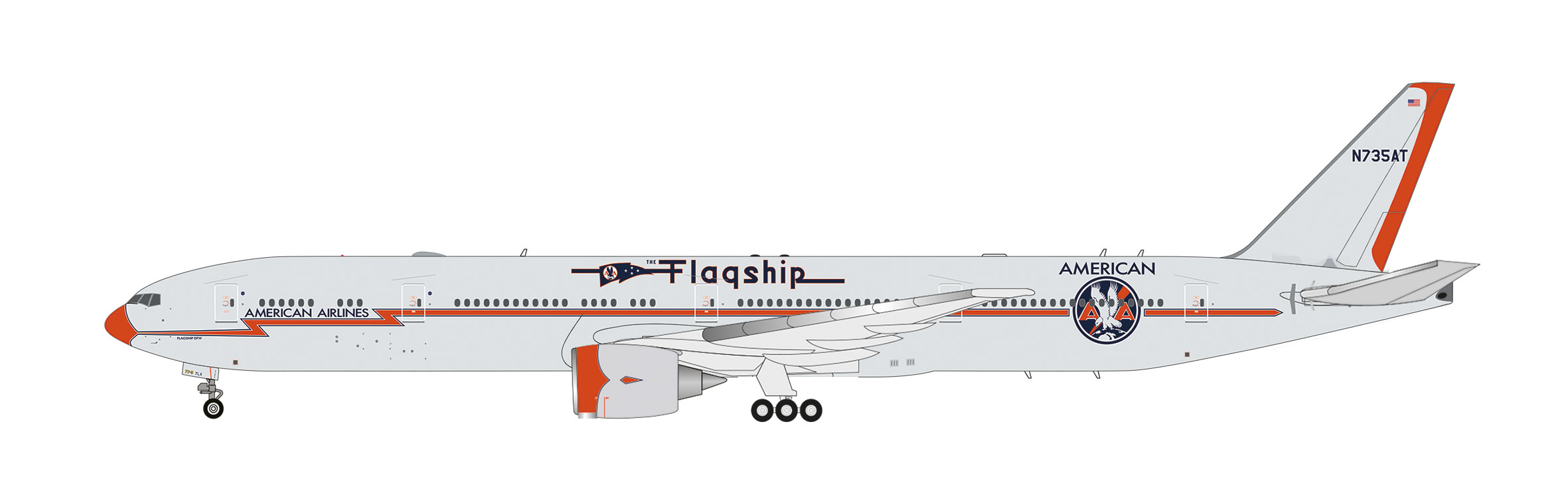 Am 25. April 1926 trat ein junger Pilot und Fluglehrer namens Charles Lindbergh in die Robertson Aircraft Corporation mit Sitz in Missouri ein, um auf einer Postroute zwischen St. Louis und Chicago Post zu befördern. Dieser erste Flug war der bescheidene Anfang der heute weltweit größten Fluggesellschaft, gemessen an der Zahl der beförderten Passagiere und der täglich durchgeführten Flüge. Nach zahlreichen Fusionen und Übernahmen wurde das Konglomerat an Fluggesellschaften 1930 unter dem Namen American Airways zusammengeführt, bevor es vier Jahre später in American Air Lines umbenannt wurde. Passenderweise hat American die historische "Flagship"-Farbgebung auf sein aktuelles Flaggschiff, die Boeing 777-300ER, übertragen. Das ikonische orangefarbene Blitzmotiv feierte vor fast 90 Jahren auf der Douglas DC-3 sein Debüt. Sämtliche DC-3 wurden nach Städten benannt, die die Fluggesellschaft damals anflog, wie beispielsweise "Flagship Knoxville", die im CR Smith Museum in Fort Worth, Texas, ausgestellt ist. Diese besondere Jubiläums-Triple Seven wird zunächst in den Maßstäben 1:500 und 1:200 bei Herpa erscheinen.