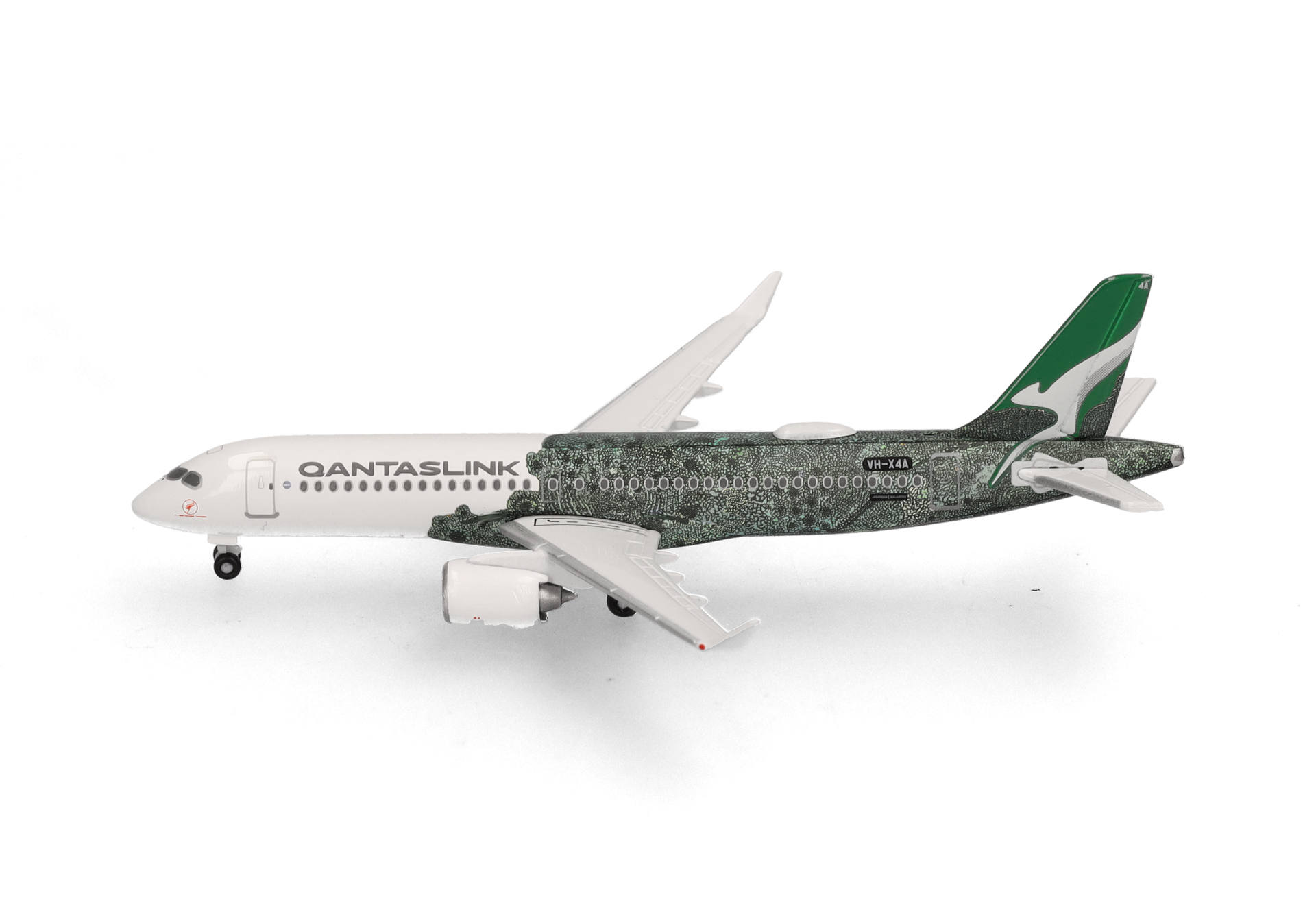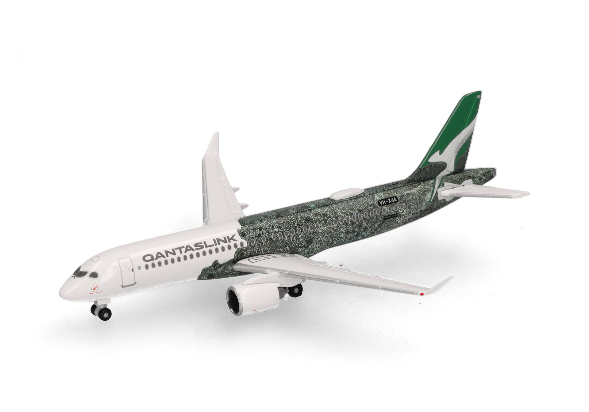 Am 1. März 2024 hob die erste von 29 von der australischen Qantas bei Airbus bestellten A220 zu ihrem ersten kommerziellen Flug ab und präsentierte eine ganz besondere Bemalung. Balarinji, eine führende australische Designagentur für die indigenen Völker Australiens, hatte die außergewöhnlichen Rumpfdesigns aller bisherigen Flugzeuge in der Flying Art Series von Qantas entworfen. Dabei arbeiteten sie mit Künstlern der First Nations und ihren Familien zusammen. Das jüngste Werk auf der hochmodernen Airbus A220 von QantasLink setzt diese besondere künstlerische Partnerschaft fort. Die 1952 in der abgelegenen Gemeinde Kanpi in Südaustralien geborene Maringka Baker begann zu malen, um die Geschichten ihrer Vorfahren zu erzählen, die sich auf das Reisen, die zeremoniellen Geschäfte der Frauen, die Familienbeziehungen und das traditionelle Land beziehen. Sie ist als eine der erfolgreichsten Künstlerinnen Australiens anerkannt und gilt als Inspirationsquelle für eine neue Generation von Künstlern der First Nations. Diese Bemalung erzählt die Geschichte von zwei Schwestern, die gemeinsam Australien durchqueren und große Entfernungen zurücklegen, um ihren Weg nach Hause zu finden. Das Flugzeug wurde nach dem Kunstwerk benannt: Minyma Kutjara Tjukurpa - Die Schöpfungsgeschichte der zwei Schwestern. Fuselage Design © Balarinji / Artwork: Maringka Baker, Minyma kutjara tjukurpa, 2018 © Maringka Baker/Licensed by Copyright Agency