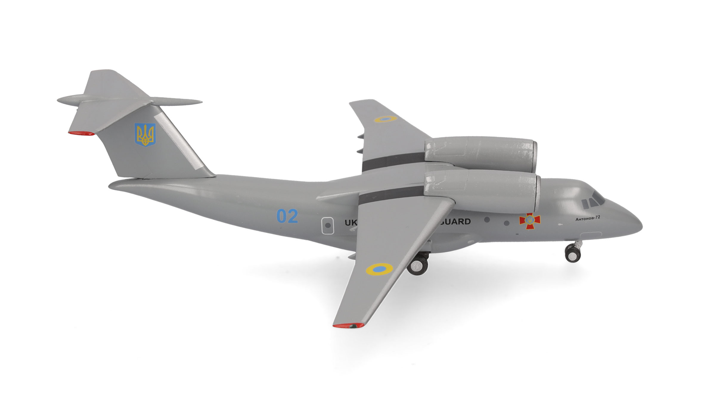 Die AN-72, NATO-Codename Coaler, wurde in den späten 1970er Jahren als Ersatz für den weit verbreiteten Turboprop-Transporter Antonov AN-26 entwickelt. Die Anordnung der Triebwerke vor und oberhalb der Tragflächen sorgt für das außergewöhnliche Aussehen des Transporters. Das Flugzeug nutzt den sogenannten Coanda-Effekt, der nach dem rumänischen Erfinder und Aerodynamik-Pionier Henri Coand benannt ist: Die Triebwerksabgase werden über die gekrümmte Oberfläche des Flügels geblasen, wodurch mehr Auftrieb entsteht und das Flugzeug kürzere Start- und Landestrecken benötigt. Zu den zahlreichen Aufgaben der ukrainischen Nationalgarde gehören der Schutz der Staatsgrenzen, die Teilnahme an UN-Friedensmissionen, die Bekämpfung paramilitärischer oder terroristischer Organisationen und der Schutz kritischer Infrastrukturen wie Kraftwerke. Zusätzlich zu zahlreichen AN-26 Turpoprop-Transportern setzt die ukrainische Nationalgarde zwei Antonov AN-72 ein, die sie bei der Truppenversorgung und -verlegung im ganzen Land unterstützen.