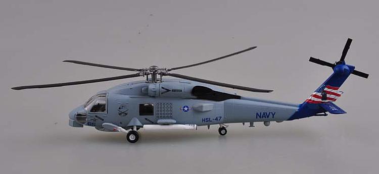 1/72 SH 60B Sea Hawk, HSL-47 Saberhawks. Fertigmodell eines US-Amerikanischen Mehrzweckhubschraubers aus den 1980er Jahren, hier mit Markierungen der U-Boot Abwehrgruppe HSL47 Saberhawks. Länge 273,7 mm / Breite 225,5 mm.