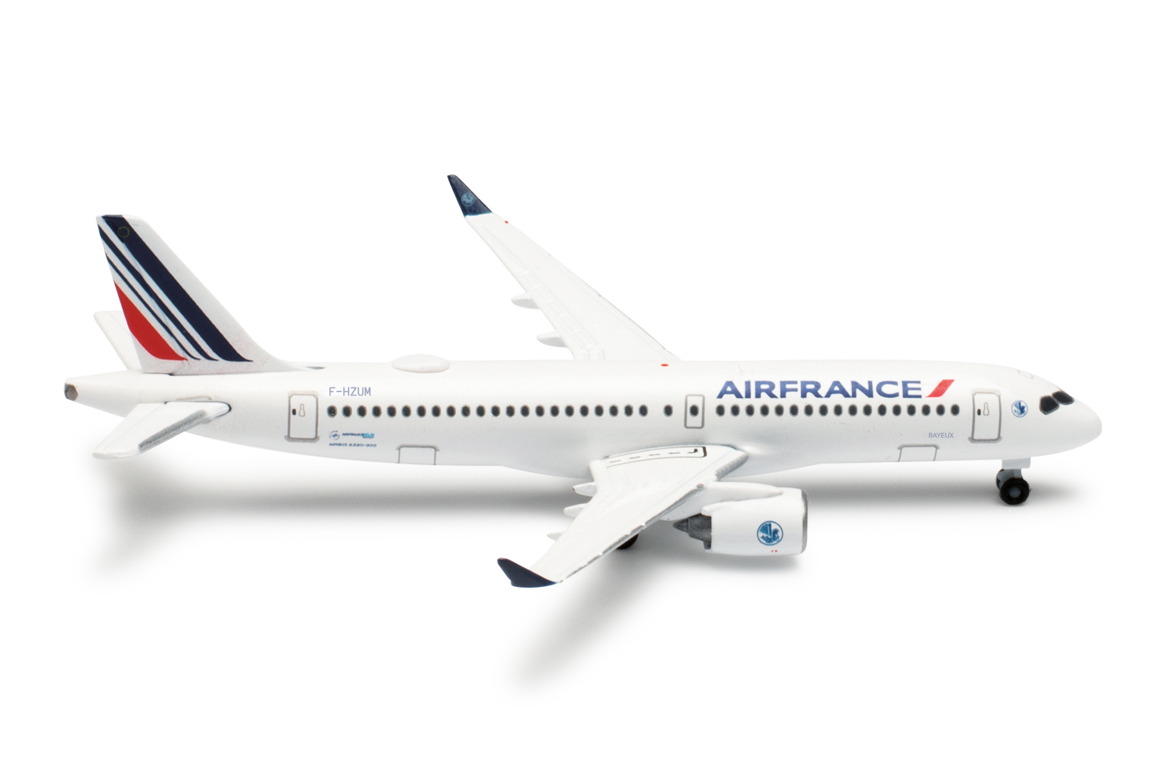 Im Rahmen des Modernisierungsprogramms der Flotte sowie mit dem erklärten Ziel, die Emissionen zu reduzieren, ersetzt Air France seit 2021 ihre in die Jahre gekommenen A318 und A319 sukzessive durch den Airbus A220. Die neue Auflage des A220-300 im Maßstab 1:500 ist nach der Stadt Bayeux in der Normandie im Nordwesten Frankreichs benannt, die vor allem für einen Wandteppich mit Szenen der normannischen Eroberung Englands im 11. Jahrhundert bekannt ist.