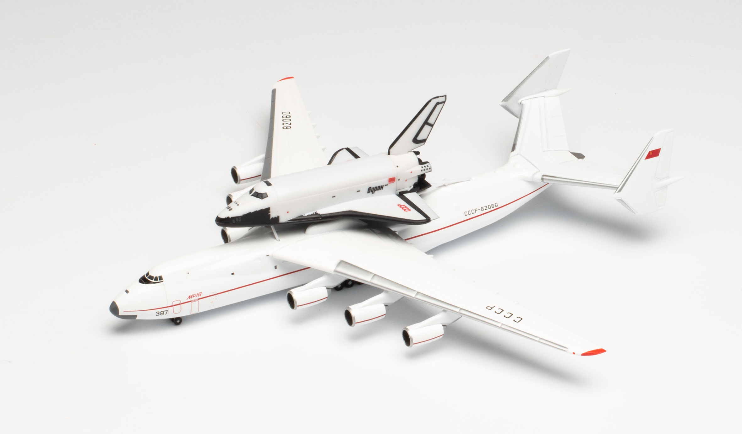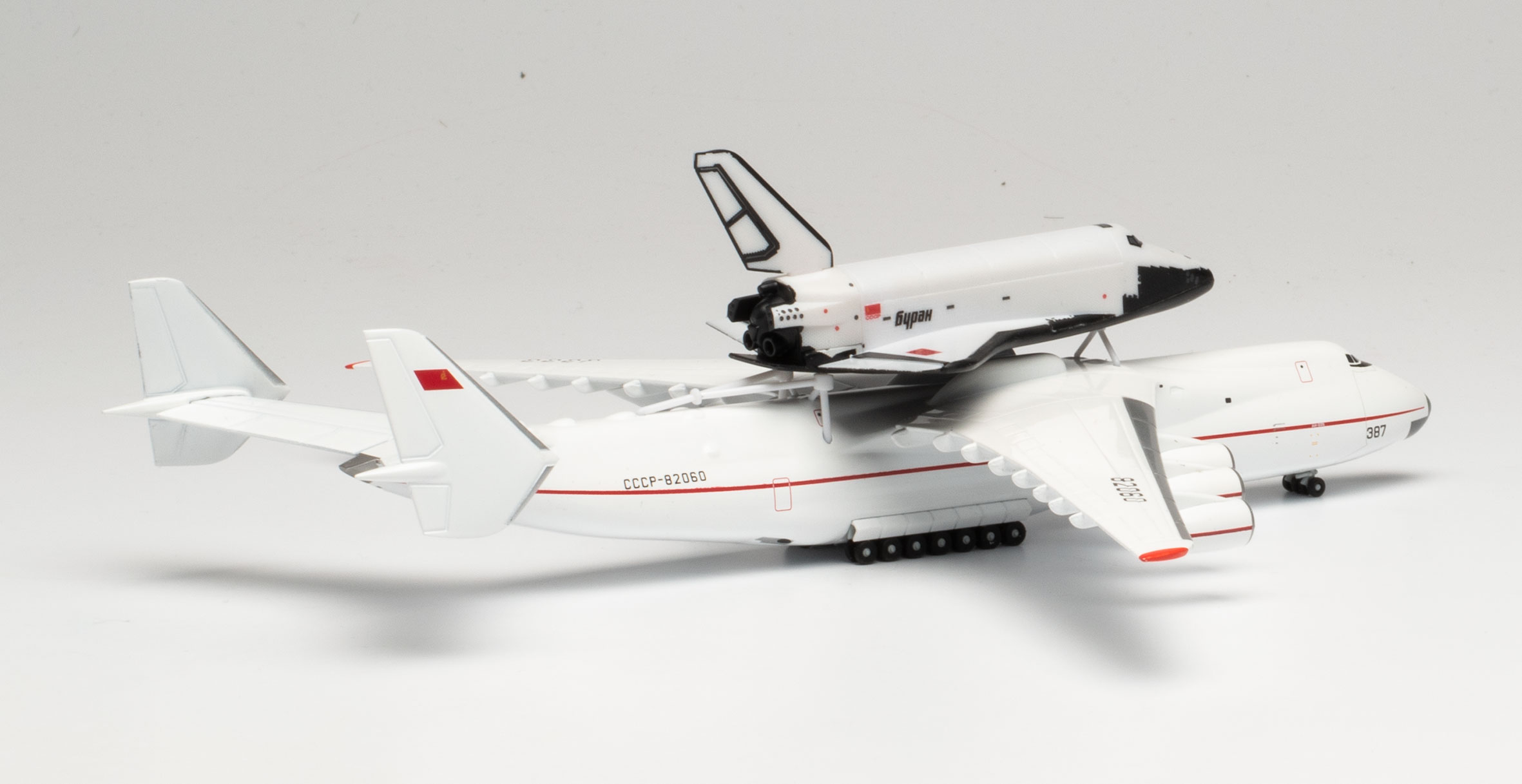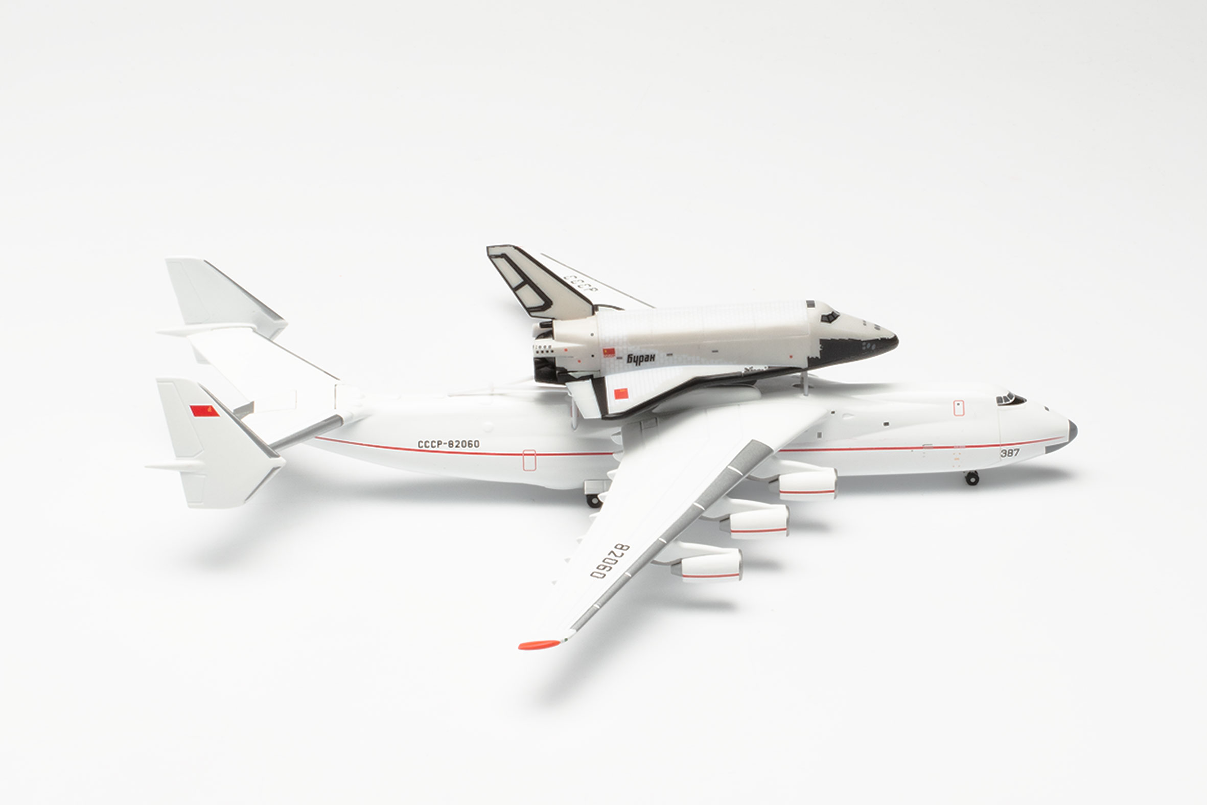 Mit Beginn der 1970er Jahre nahmen die Entwicklungsarbeiten am sowjetischen Raumfahrtprogramm Buran konkrete Formen an, der Bau der ersten Raumfähre begannen letztendlich 1980. Am 1. November 1988 startete die Buran 1.01 zu ihrem ersten und letztlich einzigen unbemannten Weltraumflug. Neben der äußeren Ähnlichkeit zum NASA Space Shuttle gab es weitere Gemeinsamkeiten, so zum Beispiel das Konzept des Starts mit einer gewaltigen Trägerrakete, oder auch bei der Beförderung des Shuttles innerhalb der Erdatmosphäre zwischen den Orbitalflügen. Während die Amerikaner dafür zwei bereits etwas in die Jahre gekommene Boeing 747 umbauten, entschieden sich die Sowjets, auf der Basis der Antonov AN-124 ein neues Trägerflugzeug zu entwickeln, das mit sechs Turbofans ausgestattet wurde, um entsprechende Leistungen und Zuladung zu gewährleisten. Es gelang, und am 21.Dezember 1988 startete das größte Flugzeug aller Zeiten zum Erstflug. Die Nutzlast von sagenhaften 34 Tonnen, davon 110 Tonnen außenbords, reichte um die Buran huckepack zum kasachischen Weltraumbahnhof Baikonur oder zur Pariser Luftfahrtausstellung im Jahr 1989 zu befördern.