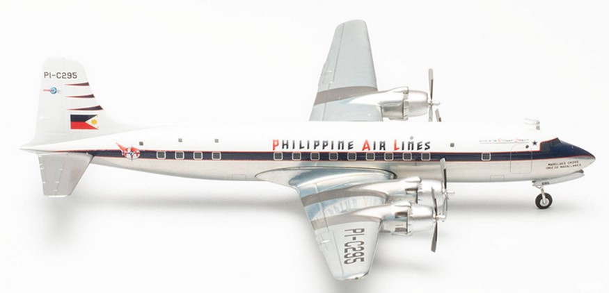 Philippine Airlines erwarb 1948 ihre ersten zwei DC-6 und setzte sie auf der Strecke von Manila nach San Francisco ein. Weil nur noch drei statt bei der DC-4 zuvor vier Tankstopps notwendig waren, konnte sie die Flugdauer von 41 auf 30 Stunden verkürzen. 1952 erhielt Philippine Airlines dann zur Verstärkung ihrer Transpazifik-Routen diese DC-6B mit dem leicht gestreckten Rumpf, getauft auf Magellans Cross / Cruz de Magellanes?. Dieses heute noch existierende Holzkreuz soll von spanischen Entdeckern unter der Leitung von Ferdinand Magellan bei der Ankunft in Cebu auf den Philippinen im Jahr 1521 gesetzt worden sein.