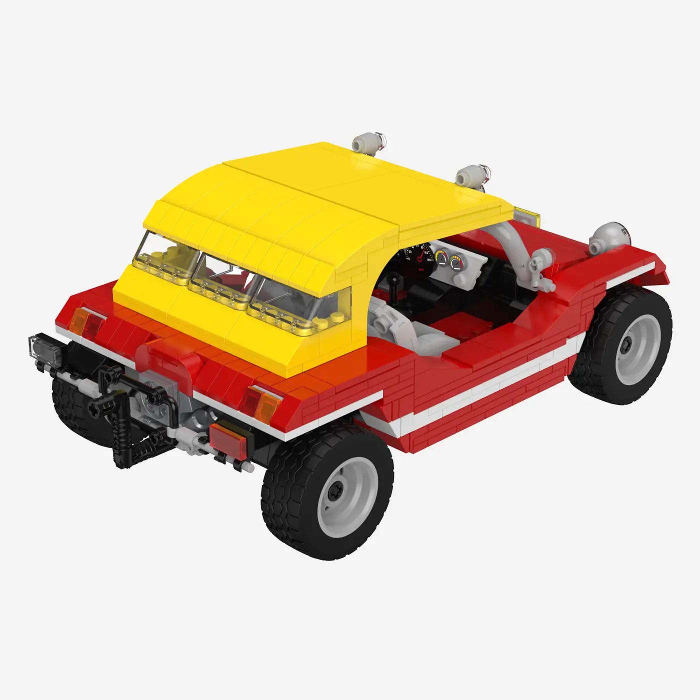 Roter Buggy mit gelbem Dach mit 712 Klemmbausteinen