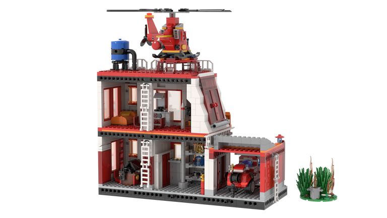 Alarm in der Stadt! Mit Kivis Feuerwehrwache entsteht das Zentrum für spannende Rettungseinsätze in der neuen Stone Heap Themenreihe KiviKasa, speziell entwickelt für Kinder im Alter von 6 bis 12 Jahren.Die mehrstöckige Feuerwehrwache überzeugt durch ihr markantes Design in Rot- und Orangetönen und ist vollgepackt mit liebevollen Details. Große Fenster sorgen für helle Räume und ermöglichen Einblicke in die Einsatzzentrale, Aufenthaltsbereiche und Technikräume. Ein besonderes Highlight ist der Hubschrauberlandeplatz auf dem Dach, von dem aus Luftrettungseinsätze gestartet werden können.Seitlich angeschlossen befindet sich eine Fahrzeughalle, in der das Feuerwehrfahrzeug jederzeit einsatzbereit steht. Weitere Ausstattungsdetails wie Geländer, Technikmodule, Wassertank und Pflanzen sorgen für eine lebendige Spielumgebung. Die offene Bauweise ermöglicht das Spielen von allen Seiten und lädt zum kreativen Entdecken ein.