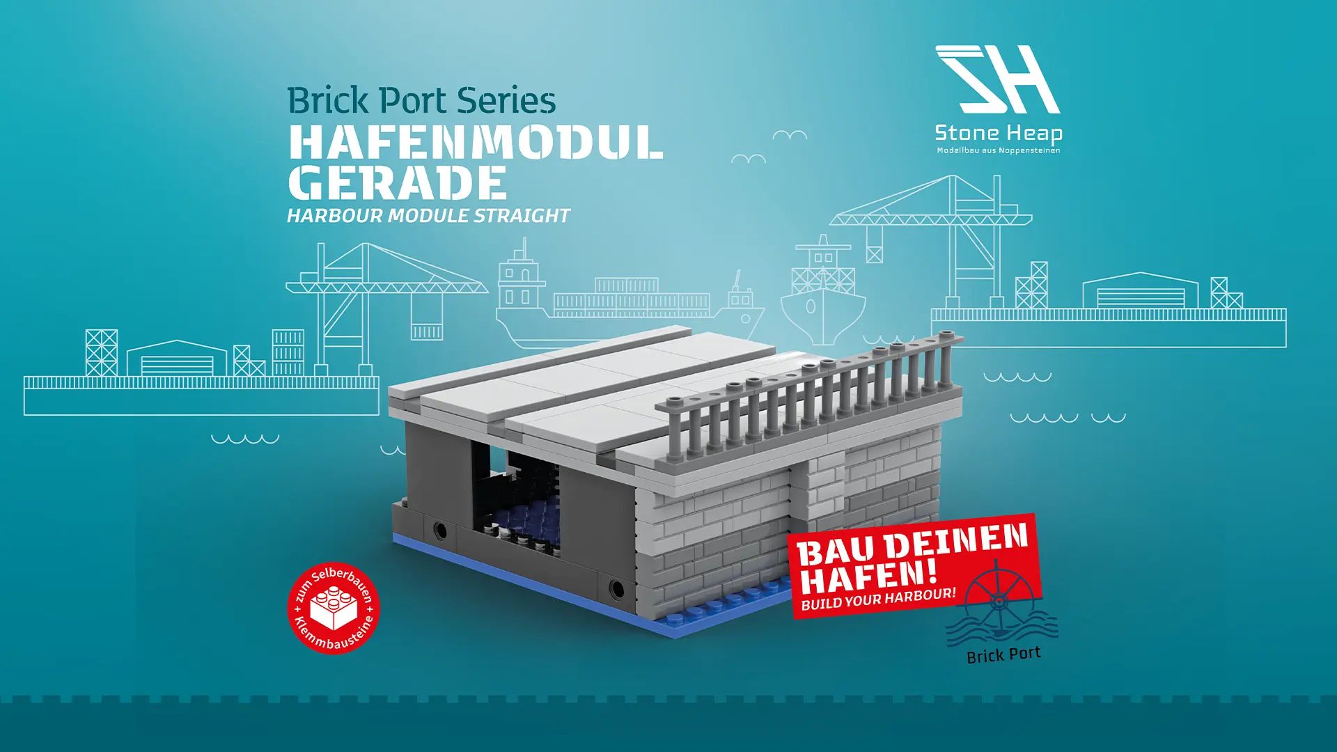 Stone Heap Hafen - Das Hafen Grundmodul Gerade bietet die ideale Basis für eine detailreiche Hafenszenerie. Mit realistischen Markierungen, Kaianlagen und Anschlüssen für Erweiterungen schafft es eine stabile Grundlage für Schiffe, Kräne und Lagerflächen. Dieses Modul wird für das Containerterminal benötigt. - Altersfreigabe 10 - Inhalt Karton Teileanzahl 105