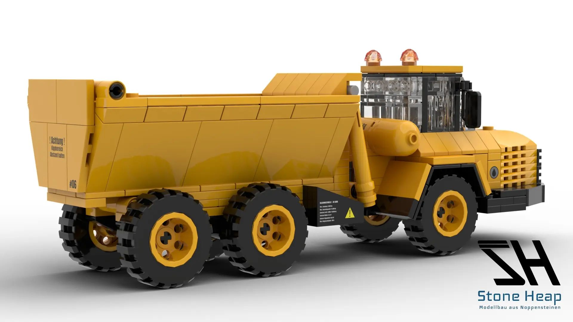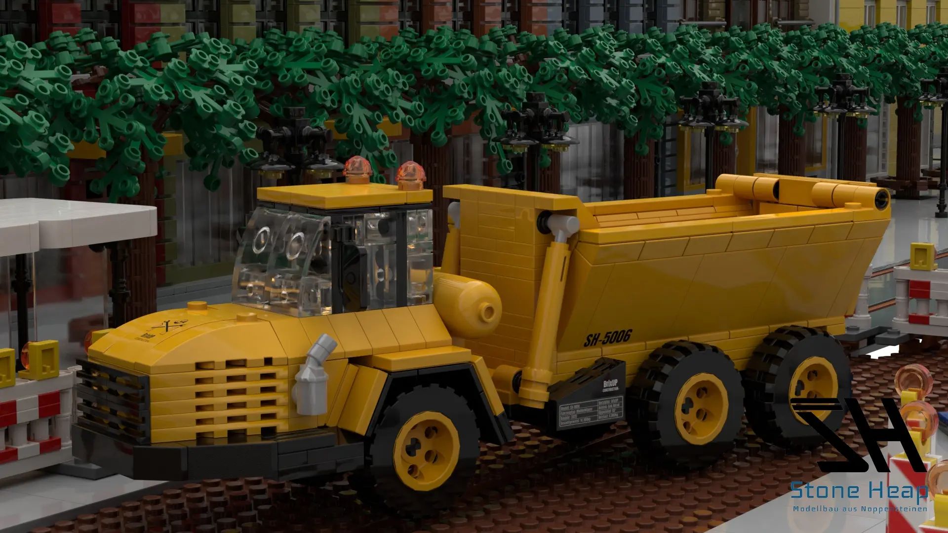 Stone Heap Baustelle - Der Muldenkipper als Klemmbaustein-Modell überzeugt mit einer kippenen Ladefläche und beweglichen Rädern, perfekt für den Transport von Schutt und Materialien auf Baustellen. Ein echtes Must-have für jede Baumaschinen-Sammlung - Altersfreigabe 14 - Inhalt Karton Teileanzahl 391