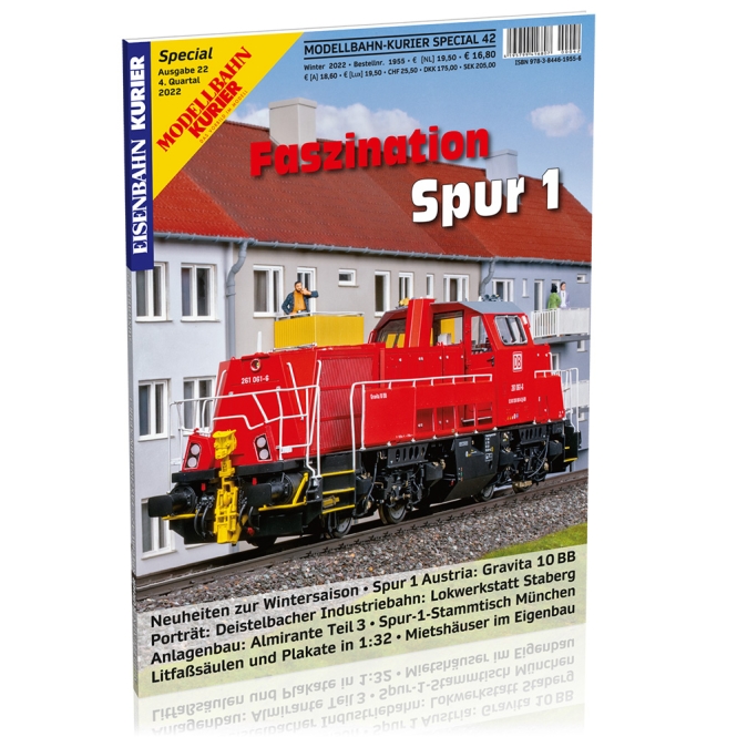Mit Märklins S 2/6 und der württ. K/Baureihe 59.0 von KM1 rollen zwei schwere Dampfloks mit außergewöhnlichen Vorbildern auf die Spur-1-Gleise. Die ebenfalls neue Gravita 10 BB von Spur 1 Austria beweist einmal mehr die Attraktivität moderner Fahrzeuge in 1:32. Im Anlagenporträt präsentiert Alexander Lösch mit der Lokwerkstatt Staberg den nächsten Bauabschnitt seiner Deistelbacher Industriebahn.