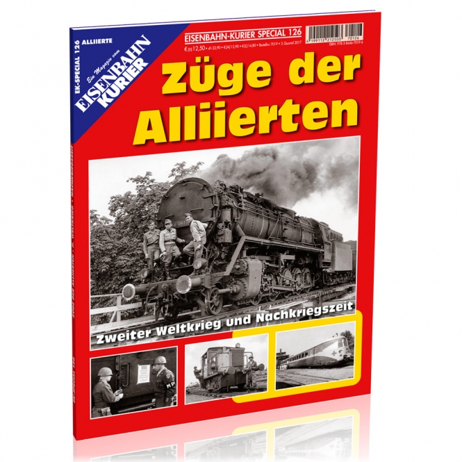 Das EK Special Züge der Alliierten zeigt wenig bekannte Seiten der Eisenbahngeschichte des Zweiten Weltkriegs und der deutschen Nachkriegszeit. Ähnlich wie das Deutsche Reich bauten auch die Alliierten spezielle Kriegslokomotiven und passendes Wagenmaterial, schufen eine umfangreiche Eisenbahnorganisation und führten ihren eigenen Bahnbetrieb. In der Besatzungszeit bestimmten die Siegermächte das Deutsche Eisenbahngeschehen und auch danach gab es bis zur Deutschen Wiedervereinigung einen planmäßigen Militär-Reisezugverkehr der Alliierten. Das EK-Special 126 schildert das damalige Zeitgeschehen und die enorme Bedeutung der Eisenbahn aus neuen Perspektiven.