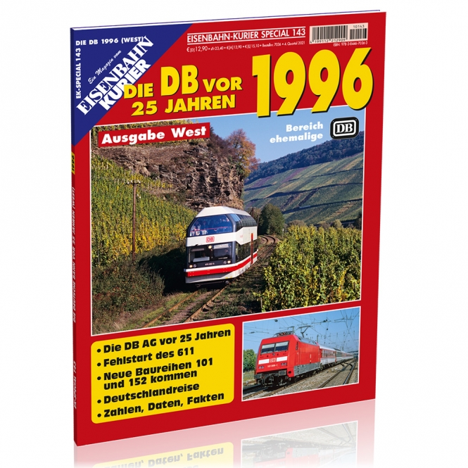 Das neue Special erinnert noch einmal an viele damals aktuelle Ereignisse, seien es wichtige Schritte zur Regionalisierung, die Inbetriebnahme des ersten Leichttriebwagens bei der DB nach der Baureihe 798, erstaunliche Fahrzeuge für neue Güterkonzepte oder das Auftauchen des ersten Rollmaterials im damals noch ungewohnten Verkehrsrot. Eine Deutschlandreise rundet das Heft in bewährter Art und Weise ab. Das EK-Special präsentiert das Geschehen im früheren DB-Bereich der alten Bundesländer und rundet den Überblick mit einem Jahresbericht und einer hochwertigen Fotoauswahl ab.