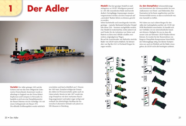 Die Lego-Eisenbahn erlaubt Modellbau der besonderen Art. Selberbauen macht Spaß mit den Modellen der interessantesten Fahrzeuge der deutschen Bahngeschichte: darunter der Adler von 1835, die 18 201 der Deutschen Reichsbahn, die V 100 der DB oder der VT 98 Schienenbus. Genaue Schritt-für-Schritt-Anleitungen, viele Tipps, Teilelisten und Bezugsquellen, alles für den erfolgreichen Lego-Modellbau von einfachen bis zu komplexen Aufgaben.