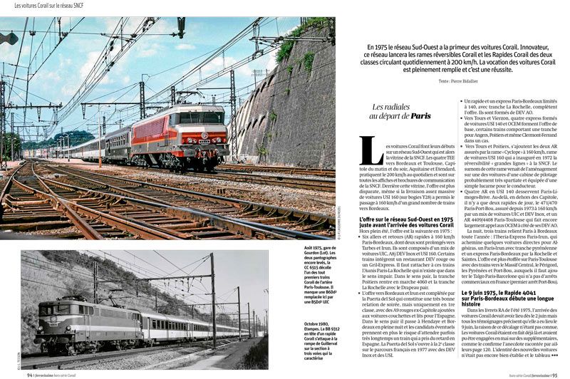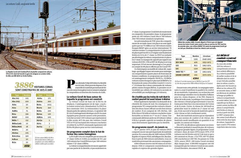 Paraissant à l?occasion de l'anniversaire de la mise en service du premier train composé de ces voitures dénommées commercialement Corail, ce hors-série dévoile des aspects méconnus de l?histoire des débuts de ces voitures, sur la base de recherches approfondies dans des documents de l?époque et d?entretiens avec des acteurs impliqués dans la conception d?origine des premières voitures et la composition des premiers trains.