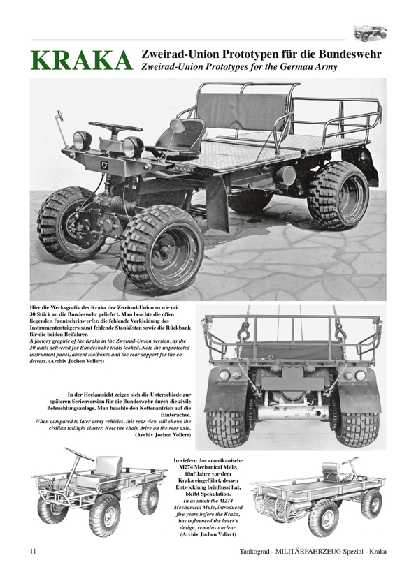 Das Heer der Bundeswehr war Anfang der 1960er Jahre noch immer in der Aufbauphase und man suchte nach einem luftverlastbaren Waffenträger, der leicht und robust genug sein sollte, mit dem Fallschirm zusammen mit den Fallschirmjägern abgesetzt zu werden und zudem so kompakt sein musste, dass er innerhalb von Transporthubschraubern oder als deren Außenlast verlegt werden konnte. Nach einer fast zehnjährigen Testphase von Prototypen und diversen Rüstsätzen wurde 1974 schließlich der Kraftkarren ?Kraka? als ?LKW 0,75 t, Pritsche, zusammenklappbar? an die Luftlandedivision der Bundeswehr ausgeliefert und diente dort für mehr als zwanzig Jahre.