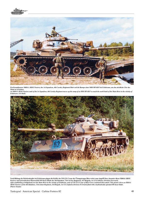 Das Manöver REFORGER 82 und seine Volltruppengefechtsübung 'Carbine Fortress' wurden zu einer Zeit sich verschlechternder Beziehungen zwischen Ost und West in Europa abgehalten. Grund hierfür war die massive Verstärkung der Warschauer-Pakt-Truppen in Osteuropa und im westlichen Teil der UDSSR. Beim Warschauer Pakt arbeitete man zudem mit Hochdruck an Einsatzkonzepten und Fähigkeiten, die im Fall eines Konfliktes dazu geführt hätten, dass der Vordere Rand der Verteidigung der NATO überrannt worden wäre. Dem Durchbruch sollte eine strategische Operation folgen, in deren Zuge NATO-Verbände eingeschlossen und vernichtet werden konnten. Neben neuen taktischen Aspekten wurde bei Carbine Fortress auch neue Waffentechnik erstmals eingesetzt, darunter der Kampfpanzer M1 Abrams, der zusammen mit seinen Vorgängern der M60-Familie zum Einsatz kam. Sowohl das Übungsgeschehen selbst, als auch die eingesetzten Fahrzeuge werden in dieser Publikation ausführlich in zahlreichen bisher unveröffentlichten Manöverfotos dargestellt.