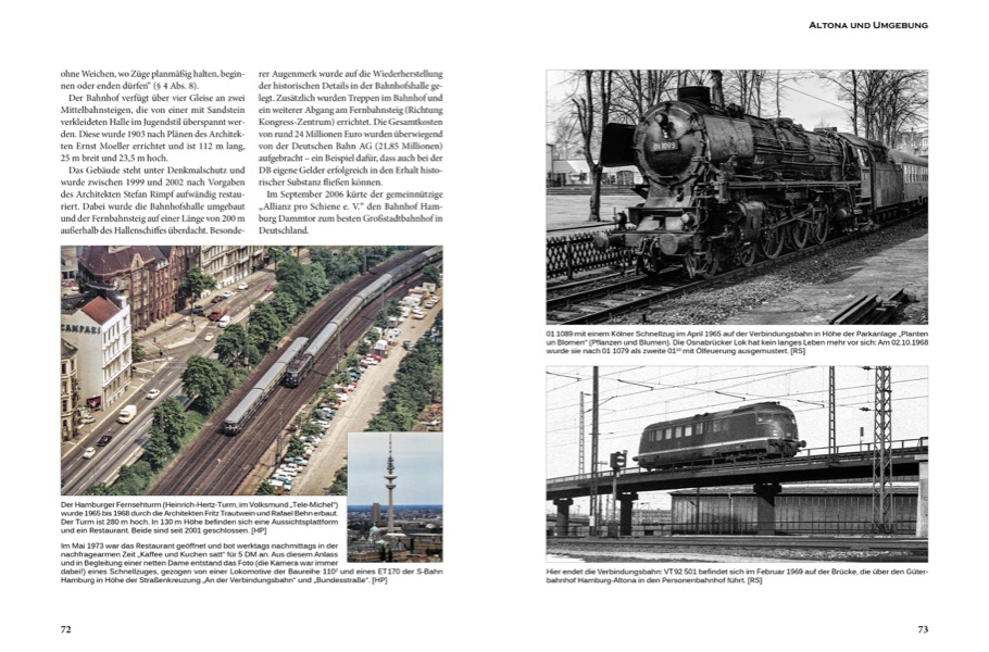 Hamburg, die größte Stadt der damaligen Bundesrepublik, bot mit ihrem vielfältigen Schienennetz dem Eisenbahnfotografen abwechslungsreiche Motive. Die Jahre1964 bis 1973 waren eine Zeit des Umbruchs, auch und besonders im Verkehrswesen. In diesen Zeitraum fallen die Elektrifizierung der aus Süden nach Hamburg führenden Magistralen, die Aufgabe des Dampflokeinsatzes und die Reduzierung des Straßenbahnbetriebes als Vorbereitung zur Gesamteinstellung. Trotzdem waren in dieser Übergangszeit Lokomotiven, Wagen und Straßenbahnen in einer großenTypenvielfalt, wie man sie heute nicht mehr kennt, im täglichen Einsatz. Der Hamburger Fotograf Rainer Schnell hat das Geschehen auf Hamburgs Schienen seit seinem 14. Lebensjahr dokumentiert. Dabei kam auch die städtische Umgebung, durch die die Stecken führen, nicht zu kurz. Dieses Buch zeigt eine Auswahl der besten Fotos, bereichert um viele Schilderungen und teilweise persönliche Erlebnisse rund um die Bahn.