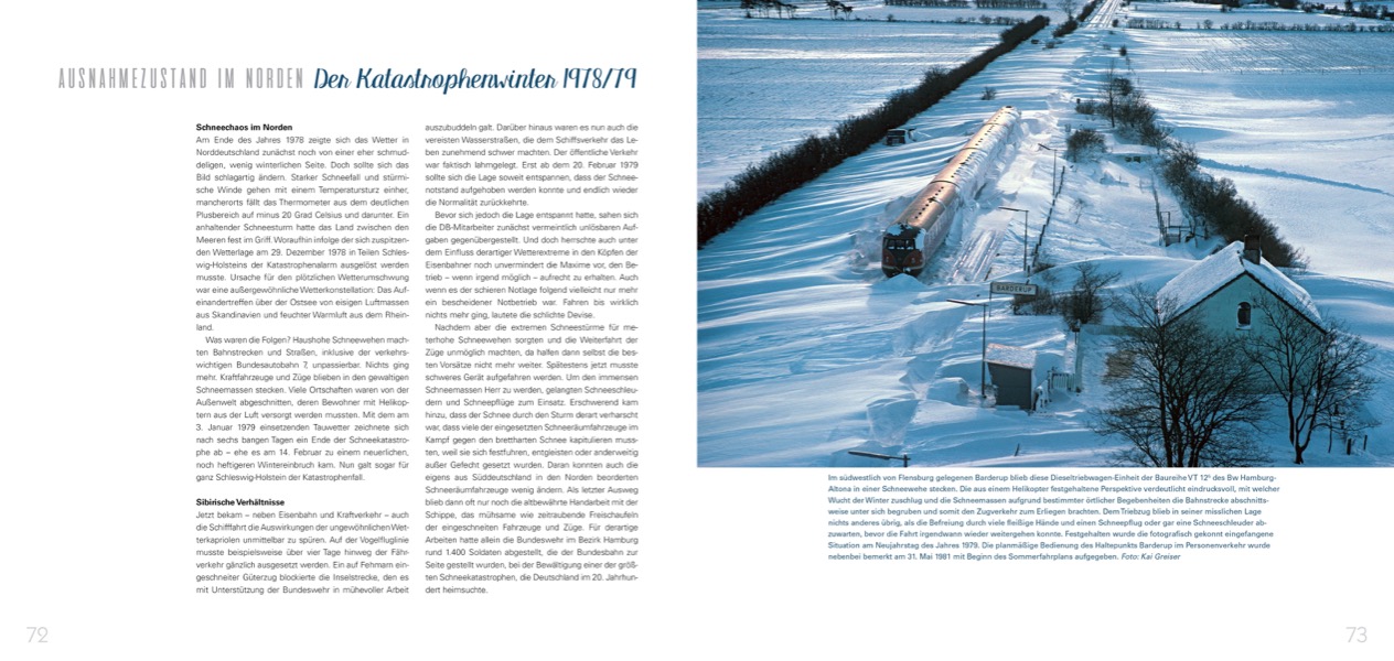 Tauchen Sie ab in eine längst vergangene Eisenbahnwelt mit ihren Menschen im steten Kampf gegen Eis und Schnee. Der überwiegende Teil der abgedruckten Winterfotografien stammt von den einschlägigen Direktionsfotografen oder sonstigen Berufsfotografen, genauso wie von namhaften Amateurfotografen. Abgerundet wird das Bild durch allerlei Faksimileabdrucke. Eine würdige Reminiszenz auf die Bundesbahn im Wintereinsatz