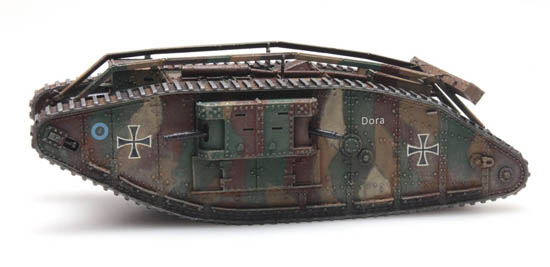 Fertigmodell aus Resin. Kampfpanzer Mark IV male als Beute der Abt. 14 Heinz.