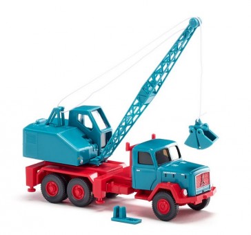 Viele der Fuchs-Kranwagen waren noch bis in die 1990er-Jahre im Einsatz. Der F 301 gilt heute als der bekannteste Fuchs-Bagger, immerhin wurde er in zwei Jahrzehnten in mehr als 15.000 Einheiten ausgeliefert. Der Erfolg mag im Rückblick nicht überraschen, denn der Hersteller entwickelte den Bagger in den Produktionsjahren immer weiter fort und bot dazu auch zahlreiche Arbeitseinrichtungen an. Kranfahrgestell mit Kardanteil sowie Felgen rot, Fahrerhaus wasserblau. Grillfläche rot bedruckt mit gesilberten Schriftzug Magirus-Deutz sowie mittigen Deutz-Logo. Seitliche Fahrerhausbedruckung mit gesilberten Türgriffen sowie Schriftzug Magirus Deutz an den Motorhaubenflanken. Drei Schnallengravuren an der Motorhaube schwarz bedruckt. Frontscheinwerfer ebenso per Hand gesilbert wie Blinker. Kranaufbau mit zweiteiligen Gittermast sowie zweiteiliger Bagger-Schaufelkorb wasserblau. Kranaufbau mit heckseitig rot bedruckten Rückleuchten und silbernen Fuchs 301-Schriftzug. Inneneinrichtung mit Steuerrad schwarz. Plattform mit Heckseitiger Kotflügel-Abdeckung und Leiterteile rot aufgesetzt.