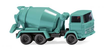 Der wasserblaue Betonmischer für den 1:160-Fuhrpark Die wasserblaue Baustellenserie wächst weiter jetzt mit dem Mercedes-Benz Betonmischer. Zu den N-Spur-Modellen der ersten Stunde zählten seinerzeit die Baufahrzeuge, gehörten sie doch zur Standardbestückung einer Eisenbahnlandschaft im Maßstab 1:160. Wiking-Modellbau pflegt die seit 1969 laufende Miniaturreihe gern. Fahrerhaus und Betonmischeraufbau wasserblau, Verglasung topaz sowie schwarzgraues Fahrgestell. Scheinwerfer, Kühlergrillumrandung, Zierleiste und MB-Stern gesilbert.