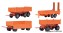 Bausatz. Bestehend aus 4 verschiedenen Anhängern. Maße: L 9,5 x B 3 x H 2,6 cm, L 8 x B 3 x H 3,2 cm, L 11,5 x B 2,7 x H 2,3 cm, L 9 x B 2,7 x H 2,8 cm. Schwierigkeitsgrad: 2 (Fortgeschrittene).