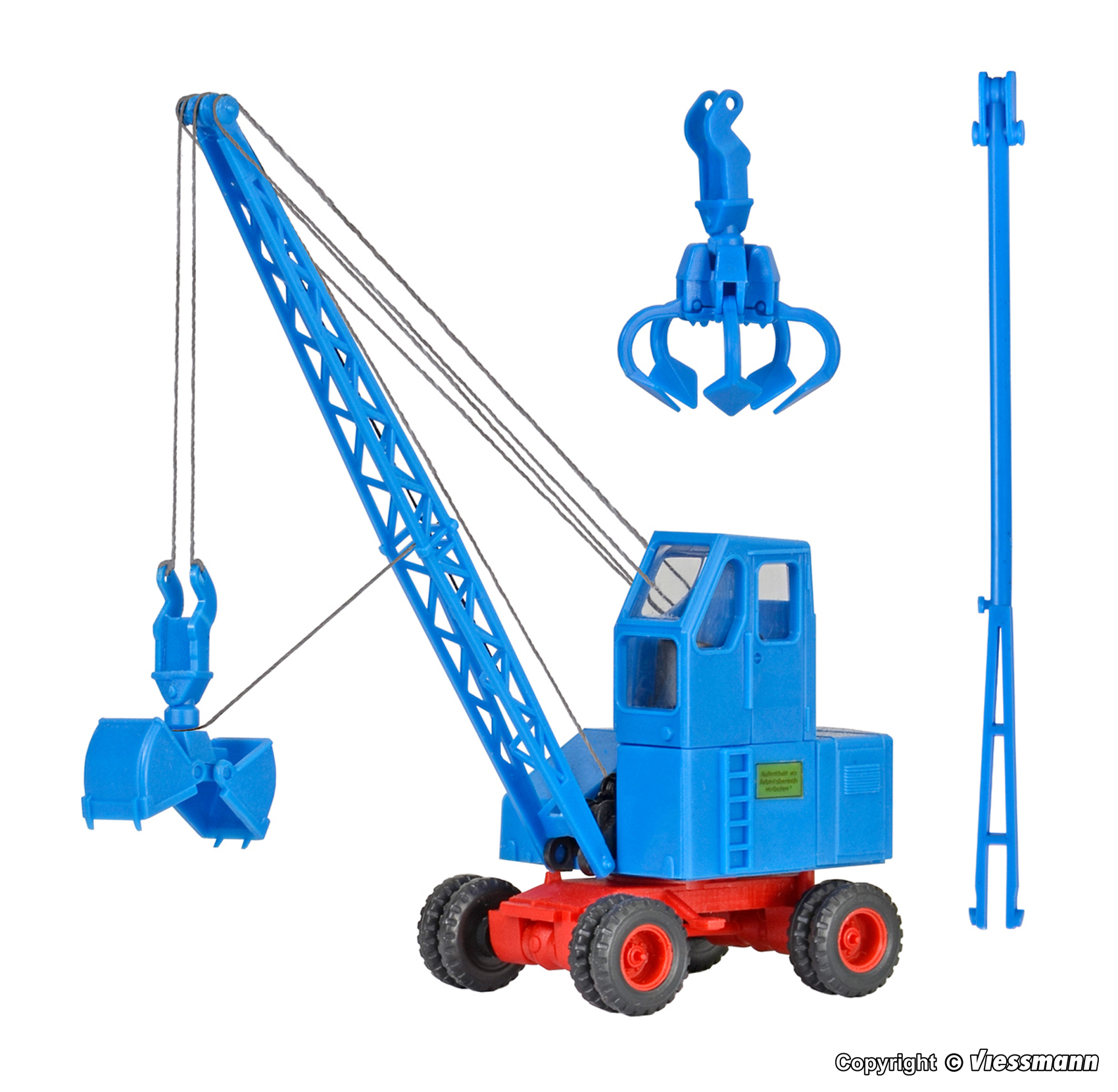 Bausatz. Vorbilddaten: Mit Einführung der Baggertypen 300 und 301 brachte FUCHS Anfang der sechziger Jahre einen Bagger auf den Markt, der weite Verbreitung fand. Überlebt haben zum Teil bis heute die Ausführungen als Kran oder Greifer. Im Umschlag von Holz, Kohlen oder Schrott und in der Landwirtschaft sowie bei der Bahn tun diese Geräte noch heute ihren Dienst. Die Ausführung mit hochgesetzter Kabine ermöglicht dem Fahrer den Überblick über hohe Bordwände oder Abteilmauern.