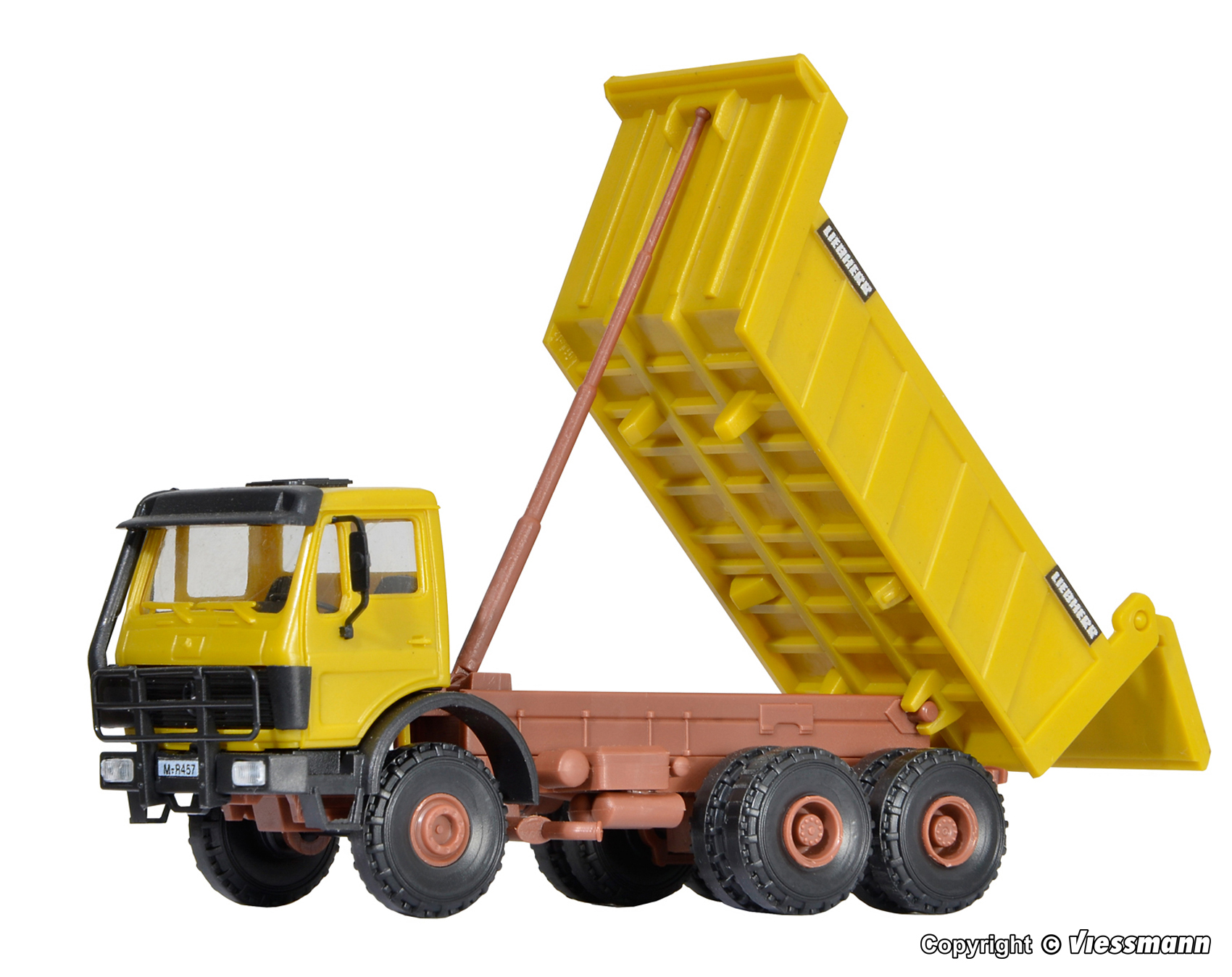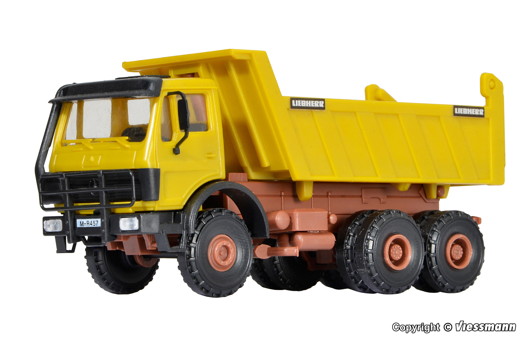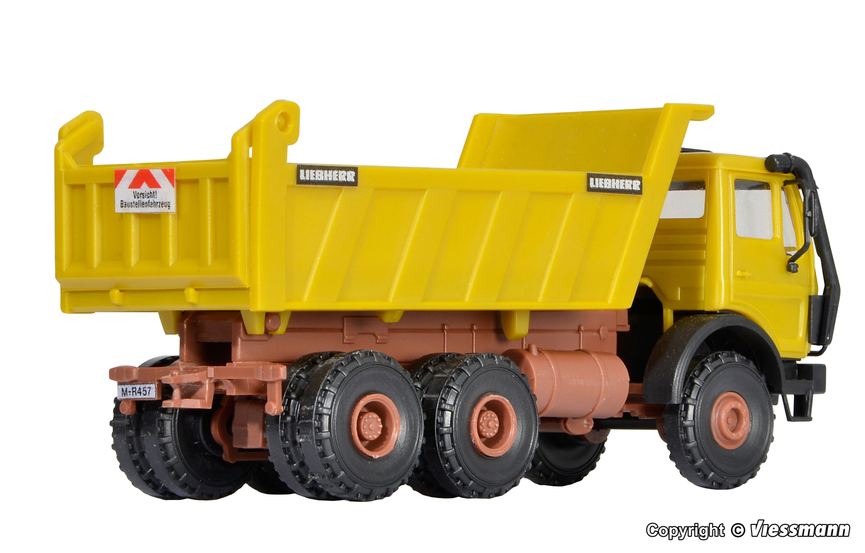 Bausatz. Vorbilddaten: MERCEDES-BENZ 2636 AK mit MEILLER Kippmulde, 10 Zylinder Dieselmotor OM 423, 261 kW/355 PS. Seit 1981 fertigt MERCEDES-BENZ schwere Allrad-Muldenkipper für extreme Baustelleneinsätze. Bei einem zulässigen Gesamtgewicht von 26 t werden die Ladekapazitäten den immer größer werdenden Baumaschinen gerecht. Kaum ein Bauunternehmer kommt heute ohne diese schweren und trotz allem wendigen Baustellenfahrzeuge aus. Maße: L 8,8 x B 2,9 x H 4 cm. Schwierigkeitsgrad: 2 (Fortgeschrittene).