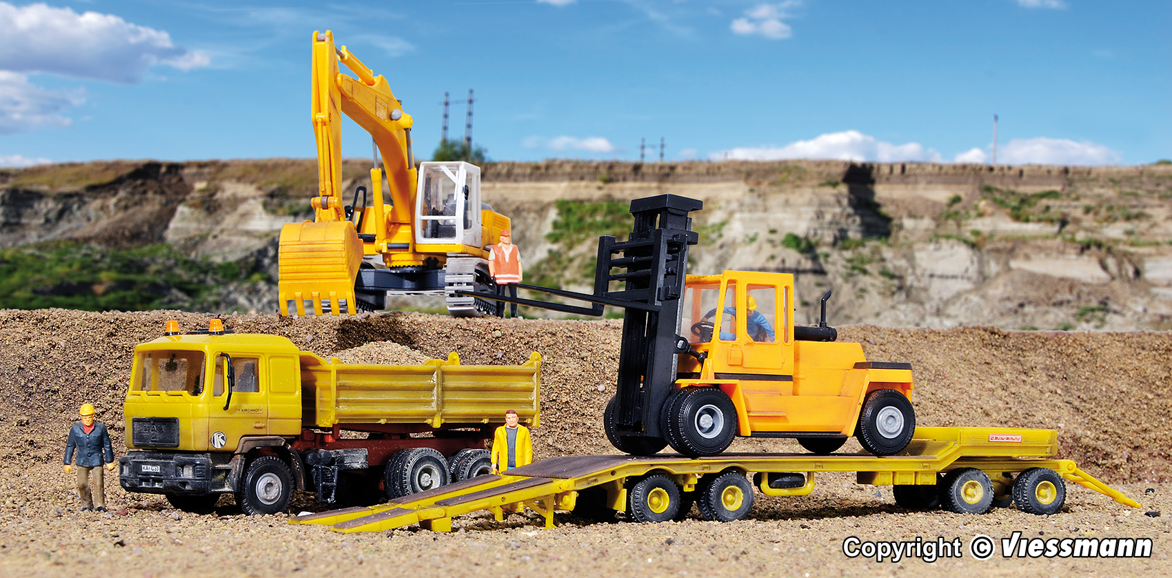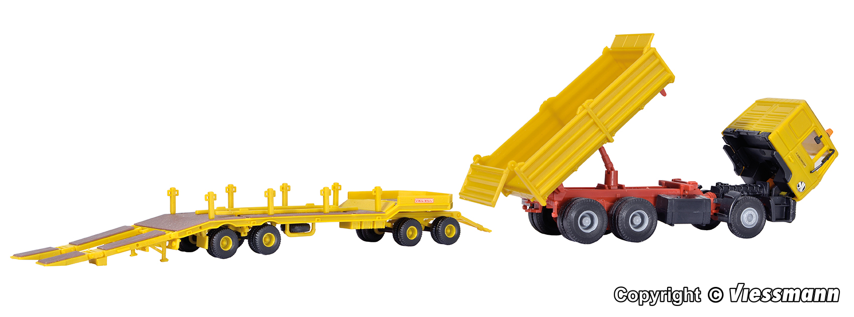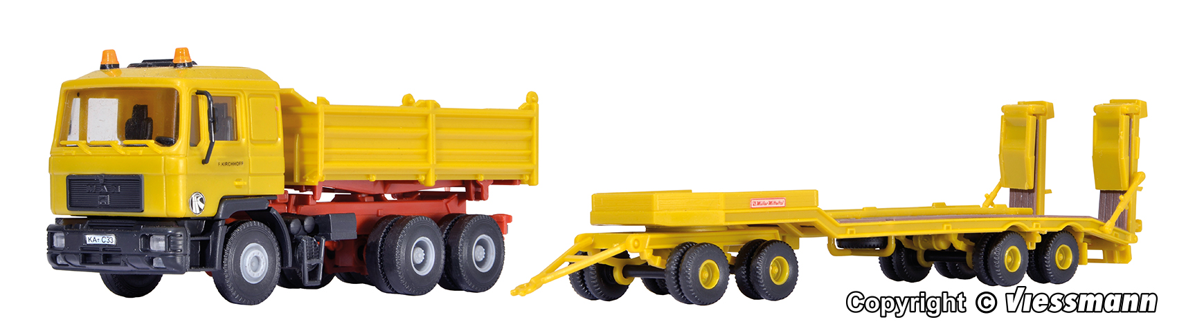 Bausatz. Vorbilddaten: MERCEDES-BENZ 2433S ? 2636S, 245 ? 261 kW/330 ? 354 PS Dieselmotoren, MÜLLER Tiefladeauflieger TS 3, Nutzlast bis 37 t, Gesamtzuggewicht bis 56 t. Von allen Tiefladesattelzügen ist die Ausführung mit 3-achsiger Zugmaschine und 4-achsigem Auflieger mit Auffahrrampen wohl die gebräuchlichste Variante. Vor allem Bauunternehmen schätzen diese handlichen Sattelzüge mit großer Nutzlast für Baumaschinentransporte aller Art. Maße: L 22,5 ? 25,5 x B 3,5 x H 3,7 ? 6,2 cm. Schwierigkeitsgrad: 2 (Fortgeschrittene).