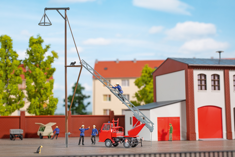 Mit vorbildgerechter Bereifung, Spiegel, Scheibenwischer, Hängerkupplung, Rundumleuchte sowie einer Dekoration mit Nummernschildern verschiedener Länder. Stützen mit Fahnen werden mit einem Decal dekoriert und beim Einsatz benötigt. Die Vorderräder können auch eingelenkt dargestellt werden. Die Leiter ist dreh- und ausziehbar. Auf dem Decal sind auch verschiedene Beschriftungen zu finden.