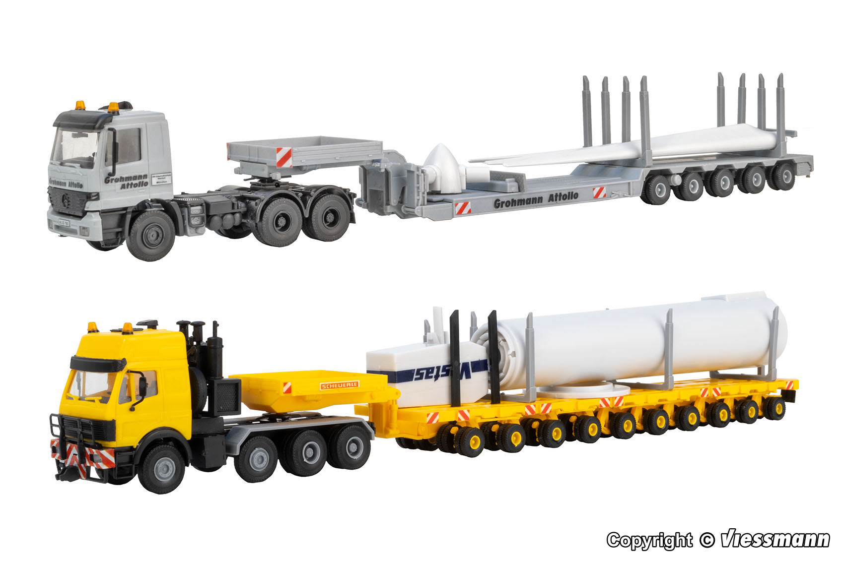 Bausatz. Bestehend aus einem Windrad, aufgeteilt auf 2 Sattelzüge. MB Actros 3-achs mit Scheuerle Tiefbettauflieger und MB SK mit Scheuerle