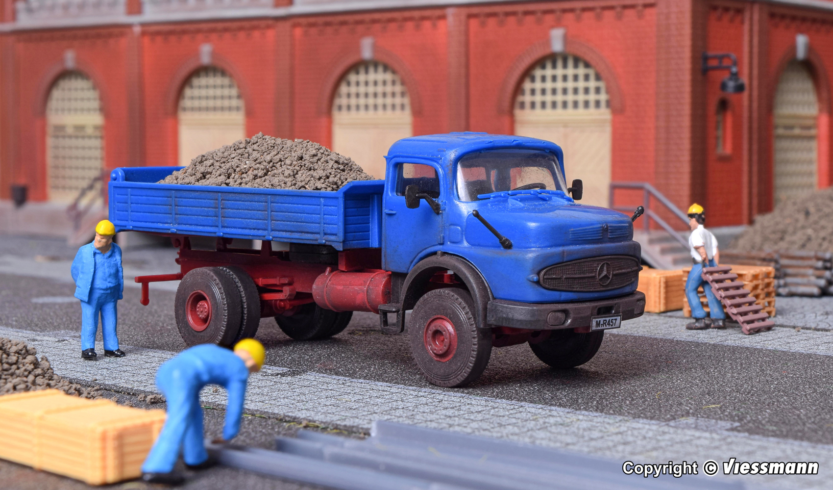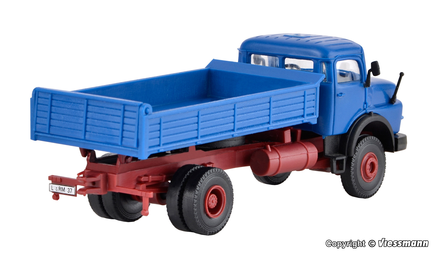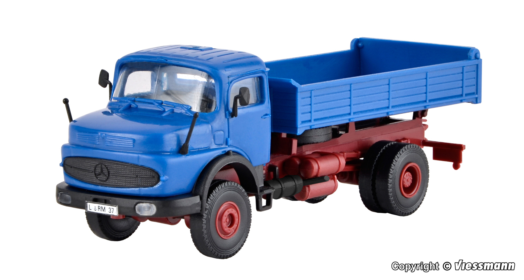 Bausatz. Vorbilddaten: Baufahrzeug der Epoche III. 1958 stellte MERCEDES-BENZ in der schweren Gewichtsklasse komplett neue Fahrzeuge vor. Sie waren als Rundhauber konstruiert, d. h. der Motor lag nicht mehr komplett vor dem Fahrerhaus, sondern war ein Stück in dieses hineingebaut. Daher waren die Fahrzeuge wesentlich kürzer als die bisherigen Bauformen. Statt der bisher freistehenden Kotflügel und Scheinwerfer wurden die Fahrzeuge in kompakter Pontonform gebaut. Nutzlast 16 t, 200 PS. Maße: L 8,8 x B 3,5 x H 3,2 ? 5,3 cm. Schwierigkeitsgrad: 2 (Fortgeschrittene).