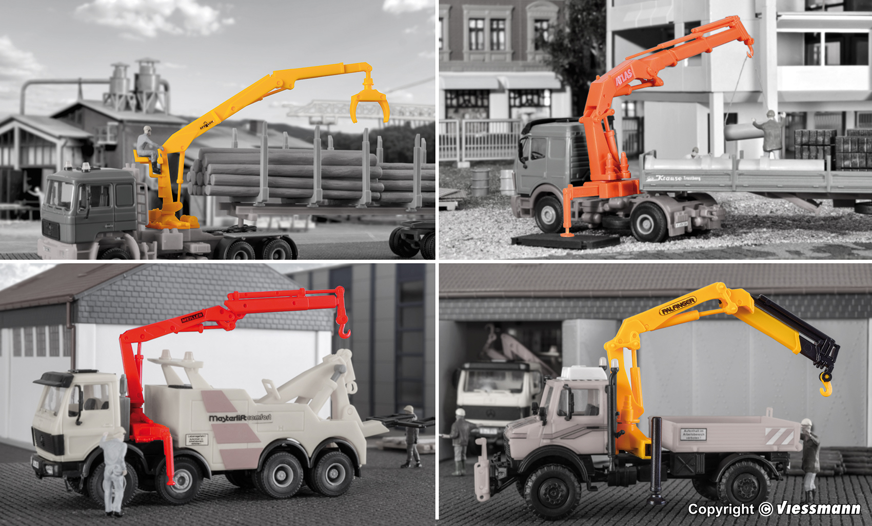 Bausatz. Vorbilddaten: MEILLER Ladekran MK 125RS, max. Tragkraft 5,3 t, max. Ausladung 6 m, PALFINGER Ladekran Typ PF 19000, EPSILON Ladekran 18.78/20.78, Tragkraft 4,5 ? 6 t, ATLAS Ladekran Typ 500.1 ? 13.9/5, Hubmoment 475 kNm, Reichweite 13,9 m, Eigengewicht 1820 kg. Schwierigkeitsgrad: 2 (Fortgeschrittene).