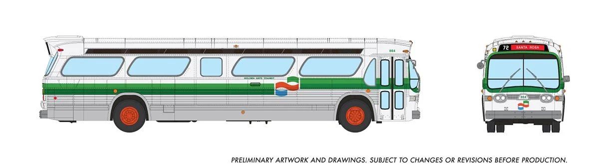 New Look Bus (Deluxe): Golden Gate Transit: #884 - Later-style body & engine door. Comes equipped with the destination sign: 72 SANTA ROSA