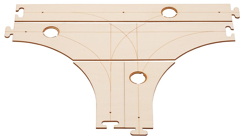 Laser-Street T-Kreuzung. Mit diesen durch Zusammenstecken leicht zu verarbeitenden Straßenteilen, die bereits die Rille für den Fahrdraht enthalten, lassen sich unterschiedliche 1- und 2-spurige Straßenverläufe bauen.