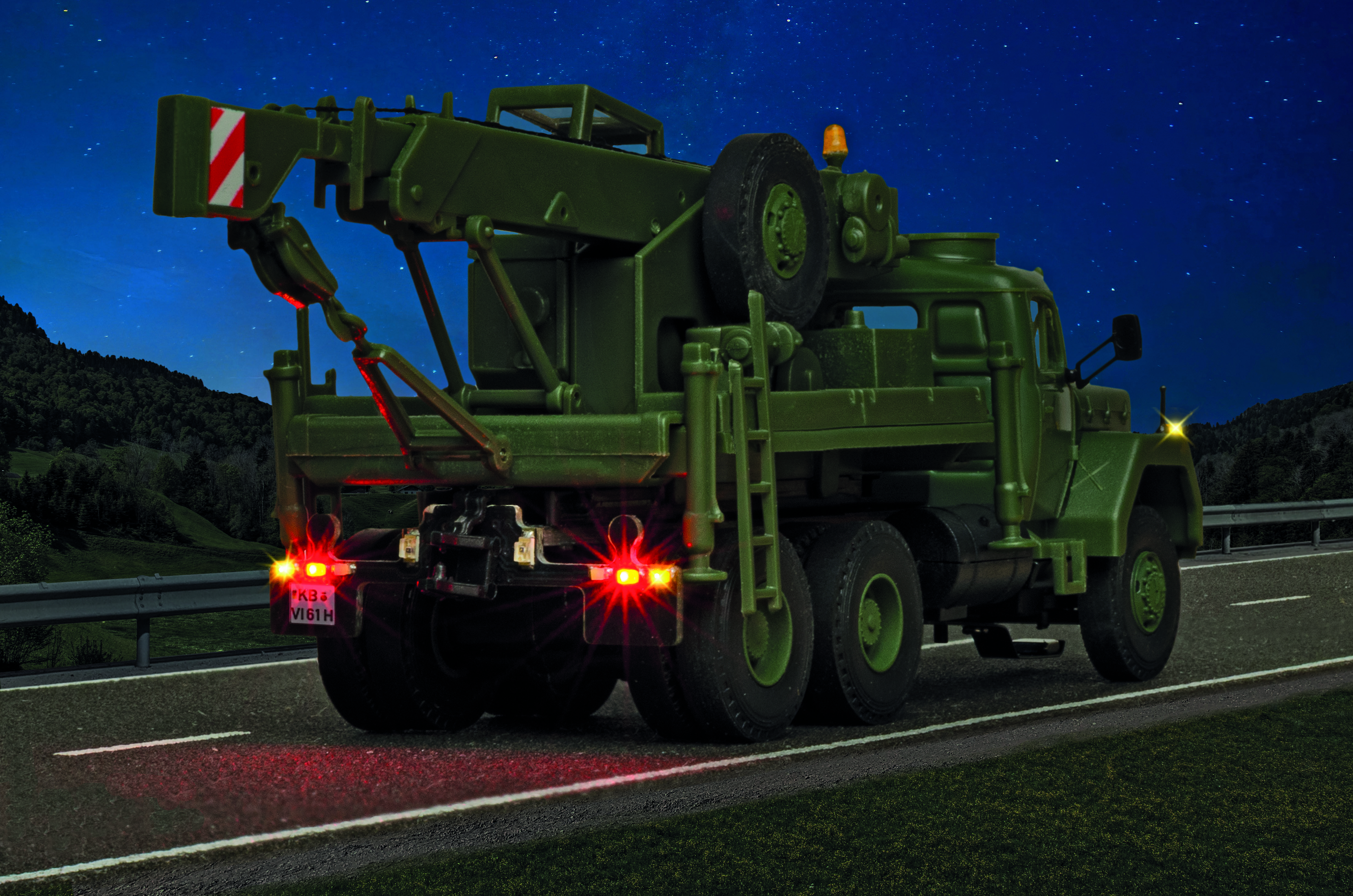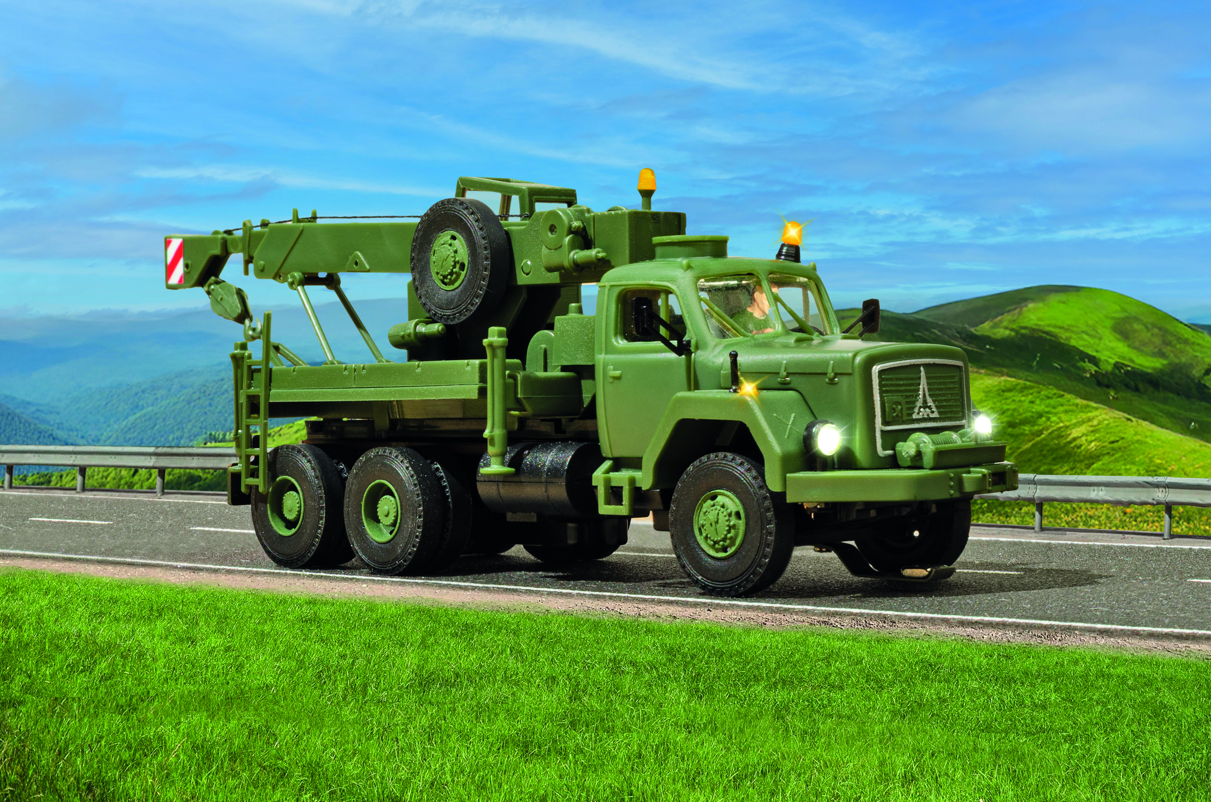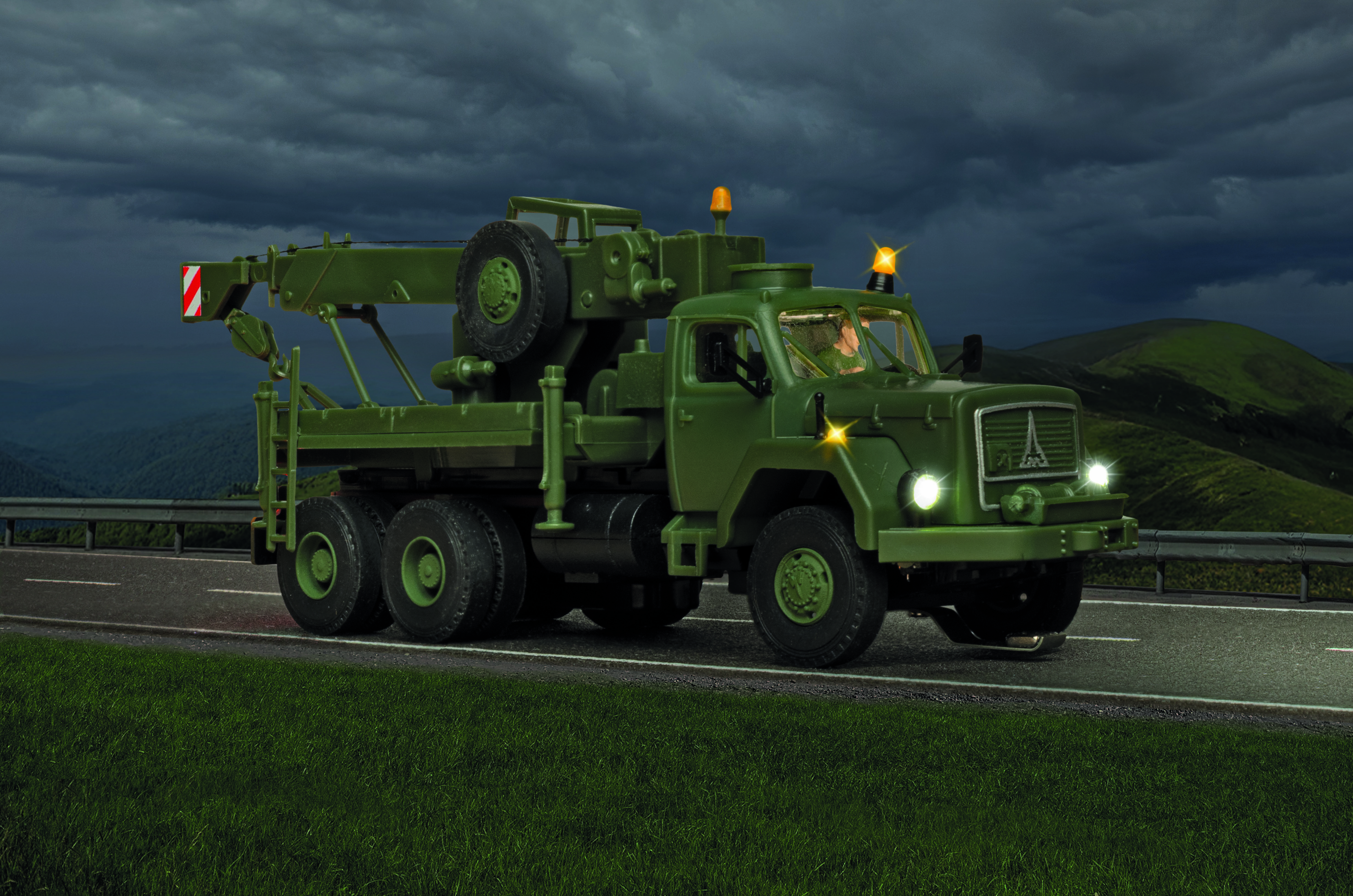 H0 MAGIRUS DEUTZ 3-achs Bergekran mit Rundumleuchte, Militär, Basis, Funktionsmodell