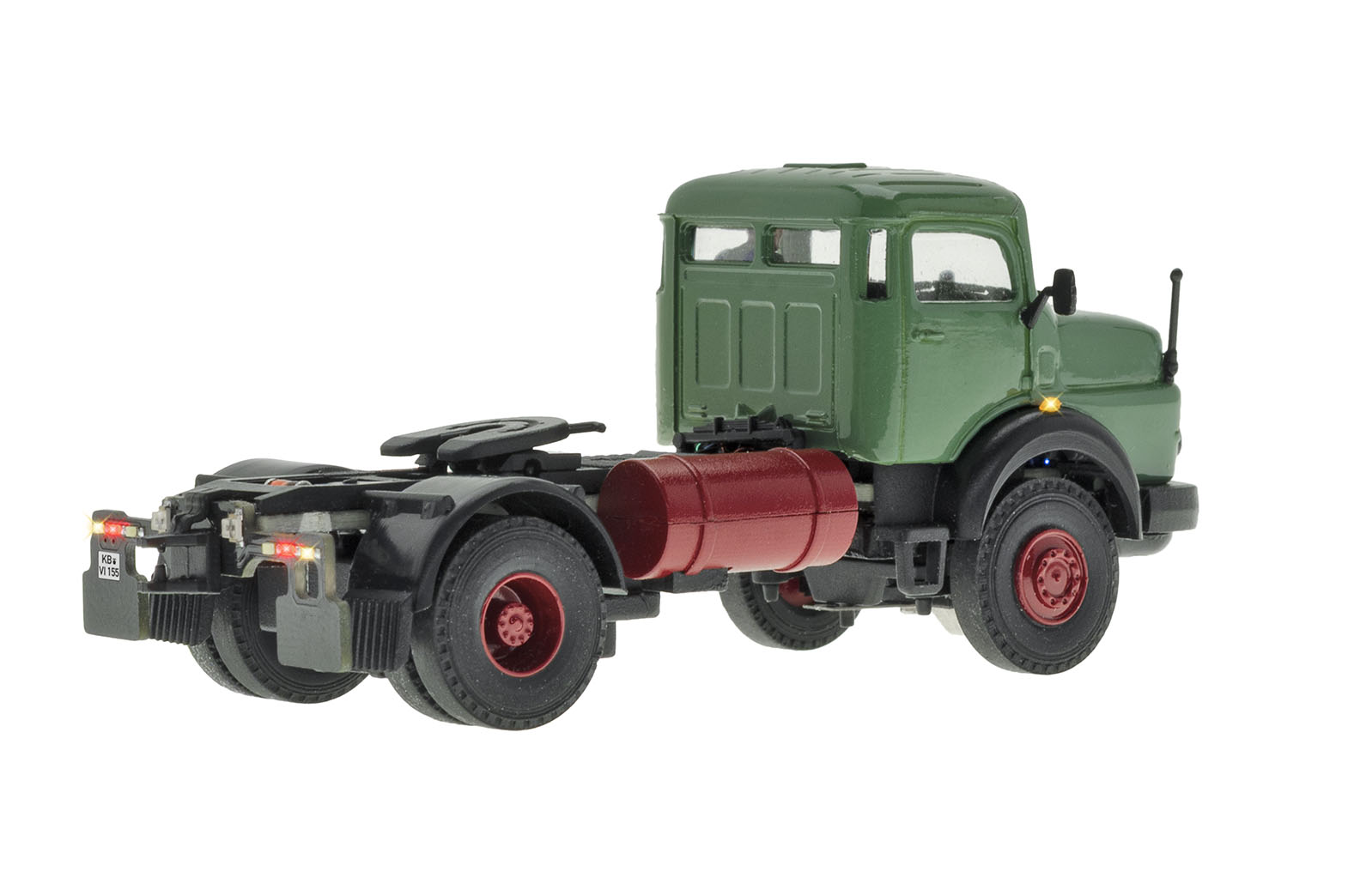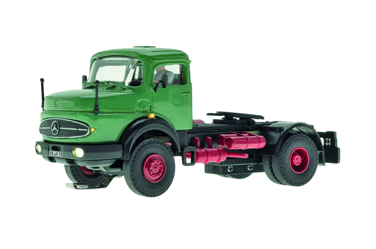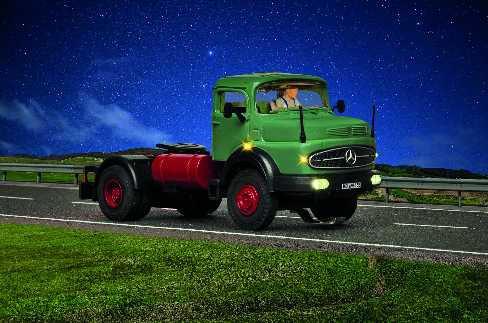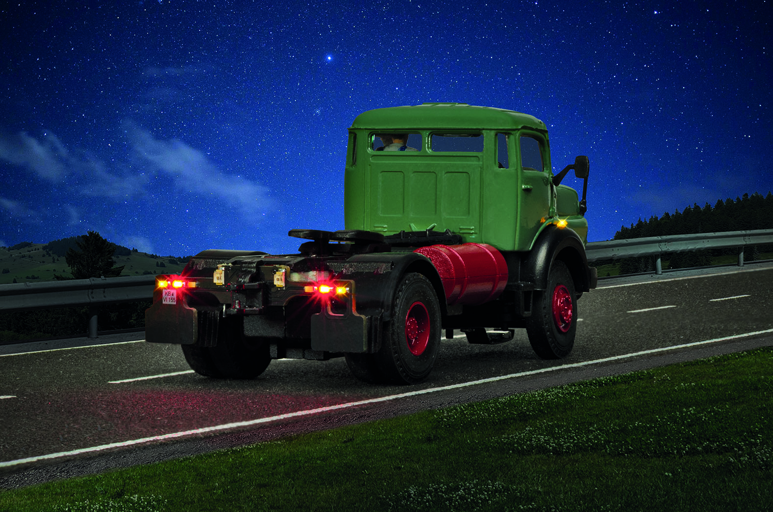 H0 MB Rundhauber 2-achs Sattelschlepper, Basis, Funktionsmodell - Wie alle Modelle der CarMotion-Serie verfügt das Fahrzeug über folgende Funktionen: - Lade- und Programmieranschluss - Kurze Ladezeiten durch moderne Li-Po Akkus - Mit einer Akkuladung ist bei normalem Fahrbetrieb mit Wartezeiten und verschiedenen Geschwindigkeiten eine Laufzeit von ca. 4 – 6 Stunden, bei Höchstgeschwindigkeit von ca. 2 Stunden möglich - Einfaches Ein-/Ausschalten mit Hilfe eines Reedkontakts unter dem Dach der Fahrerkabine mit Magnetstift oder Teleskop-Magnetstab Art. 8410 - Infrarot-Sender/-Empfänger für Abstandssteuerung (nur bedingt mit anderen IR-Systemen kompatibel) - Realistische Brems- bzw. Beschleunigungsvorgänge und konfigurierbarer Geschwindigkeit durch drehzahlgeregelten Motor - Freie Ladefläche durch Unterflurantrieb - Kabinenbeleuchtung - Bremslichter und Rückfahrscheinwerfer - Blinker rechts/links und Warnblinker steuerbar - Abblendlicht / Fernlicht - Dachblinker (abhängig vom Fahrzeugtyp) - Einsehbare Fahrerkabine mit Figur - 5-polige Steckkupplung zum Anschluss von CarMotion Anhängern oder Aufliegern - Kompatibel zu vorhandenen Systemen mit Fahrdraht oder Magnetband - Steuerung über Infrarot-Signale, Dauermagnete Art. 8431 in der Straße, elektromagnetische Stopp-Spulen und Fernbedienung Art. 8402 - Selbst ohne Spurhilfen ist eine kurze geradlinige Rückwärtsfahrt mittels Steuerung über die Fernbedienung möglich Vorbilddaten: Mercedes Benz LS (Lastwagensattelzug) 1624, 177 kW / 240 PS. Passendes Nachrüst-Set Sound: Art. 8454 L 7,5 x B 3,3 x H 3,3 cm