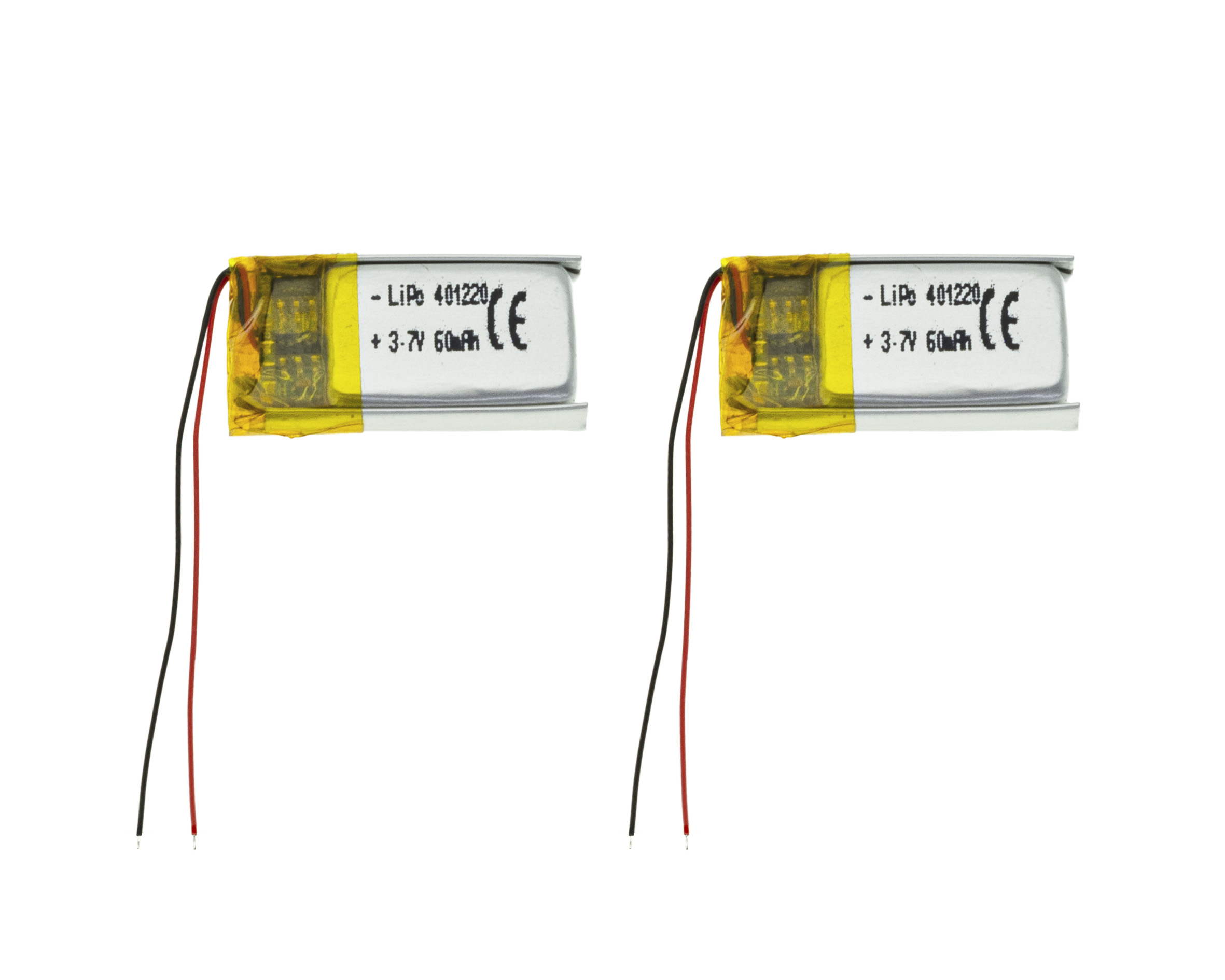 H0 Akku für MB ACTROS Fahrzeuge, 2 Stück - Leichte, leistungsstarke und kompakte LiPo-Pouch-Zellen mit eingebauter Schutzelektronik gegen Überladung, Tiefentladung und Überstrom (kurzschlussfest). Ersatzteil für Fahrzeuge vom Typ MB Actros, wobei die Zellen parallel geschaltet betrieben werden. Nennspannung 3,7 V, Kapazität jeweils 60 mAh, maximaler Lade- und Entladestrom: 2C (120 mA). L 22 x B 12 x H 4,5 mm
