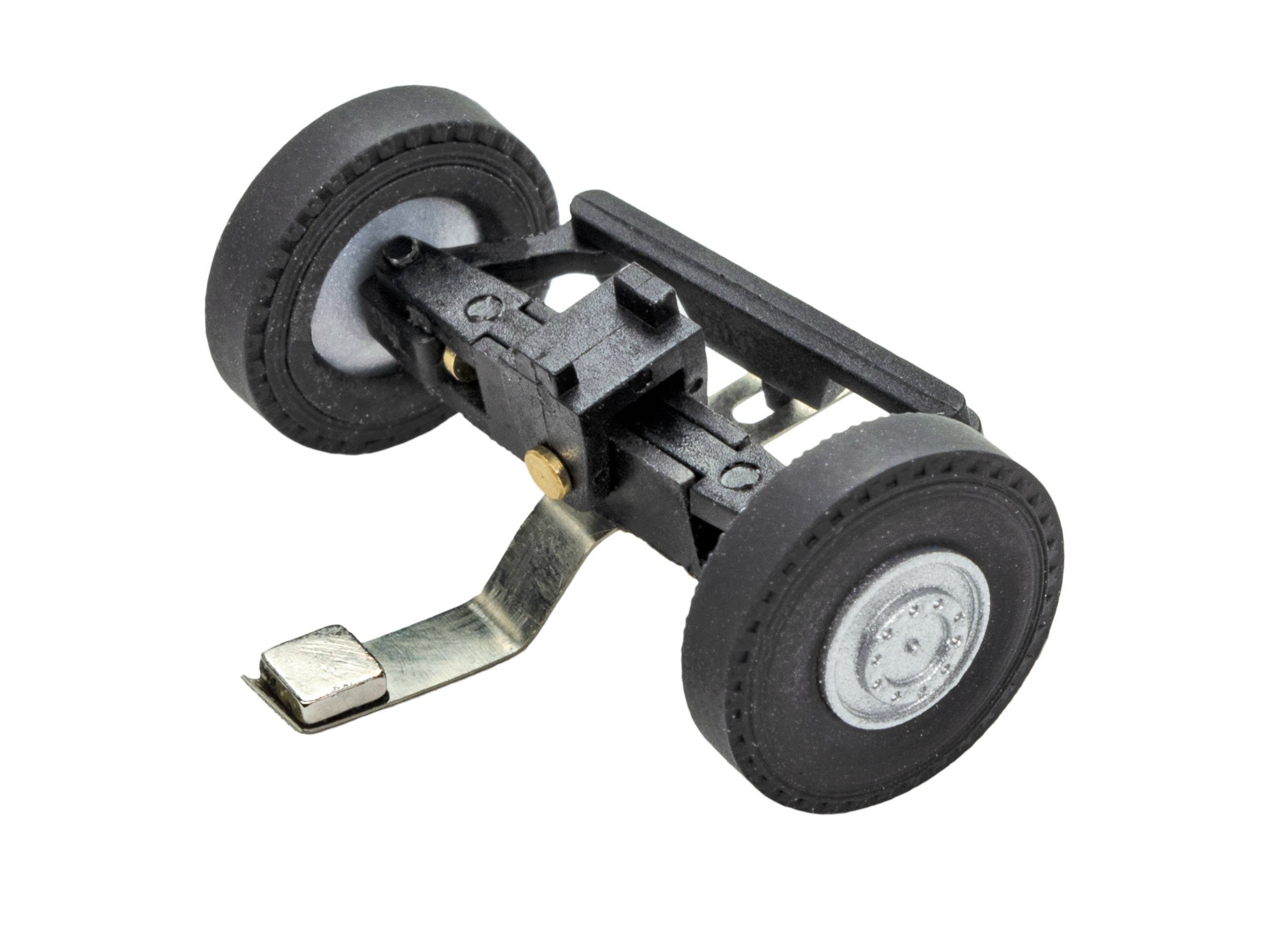 H0 Vorderachse komplett - Vorderachse komplett montiert mit Lenkarm und Magnet für CarMotion LKW. L 1,5 x B 2,8 x H 1,3 cm