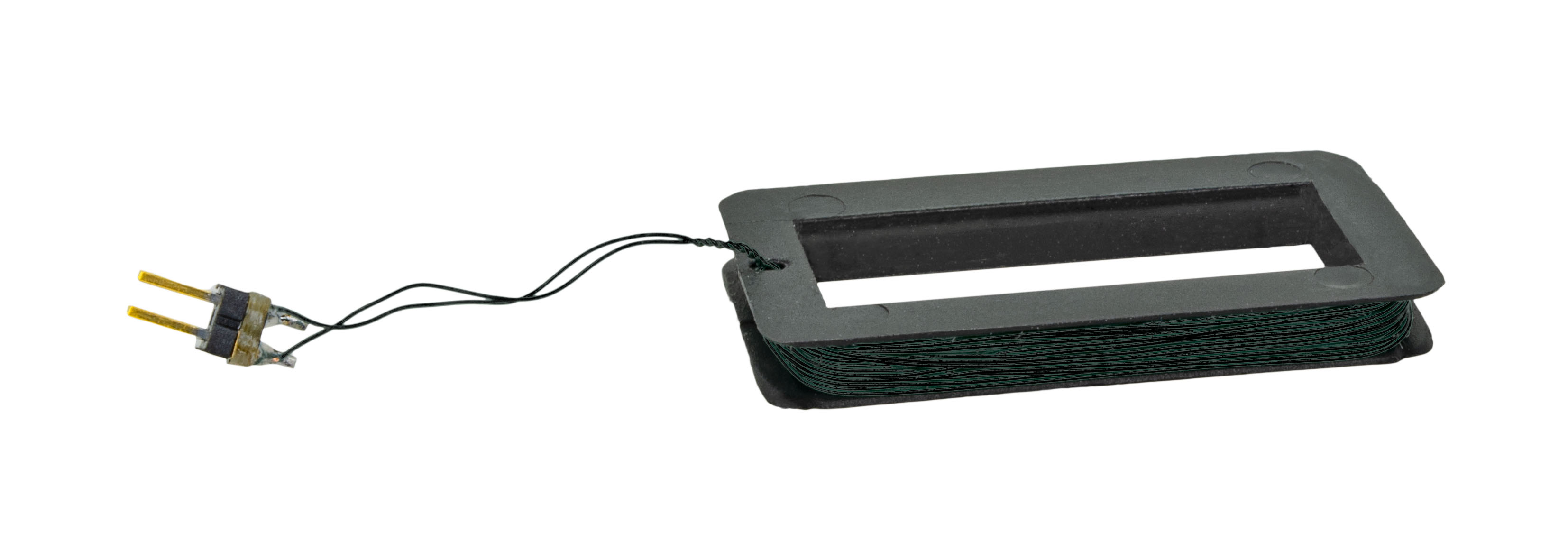 Empfängerspule zum Nachrüsten für CarMotion LKWund Busse, induktives Laden - Die Empfängerspule erweitert Fahrzeuge um induktives Laden und erforderliche Kommunikation. Sie wird einfach auf den Getriebeblock aufgeklipst und per zweipoliger Steckverbindung mit der Fahrzeugplatine verbunden. In Kombination mit dem InduktivCharger Art. 8408 ermöglicht sie unbegrenzte Fahrzeit ohne Anwendereingriff. Fahrzeuge können an Induktivladestationen einund ausgeschaltet werden. Das Fahrzeit-Ladezeit-Verhältnis beträgt etwa 3:1, abhängig von Anlagen- und Fahrzeugzuständen. Geeignet für alle CarMotion Systemfahrzeuge ohne eingebaute Empfangsspulen. Abmessungen außen: L 2,4 x B 1,3 x H 0,27 cm