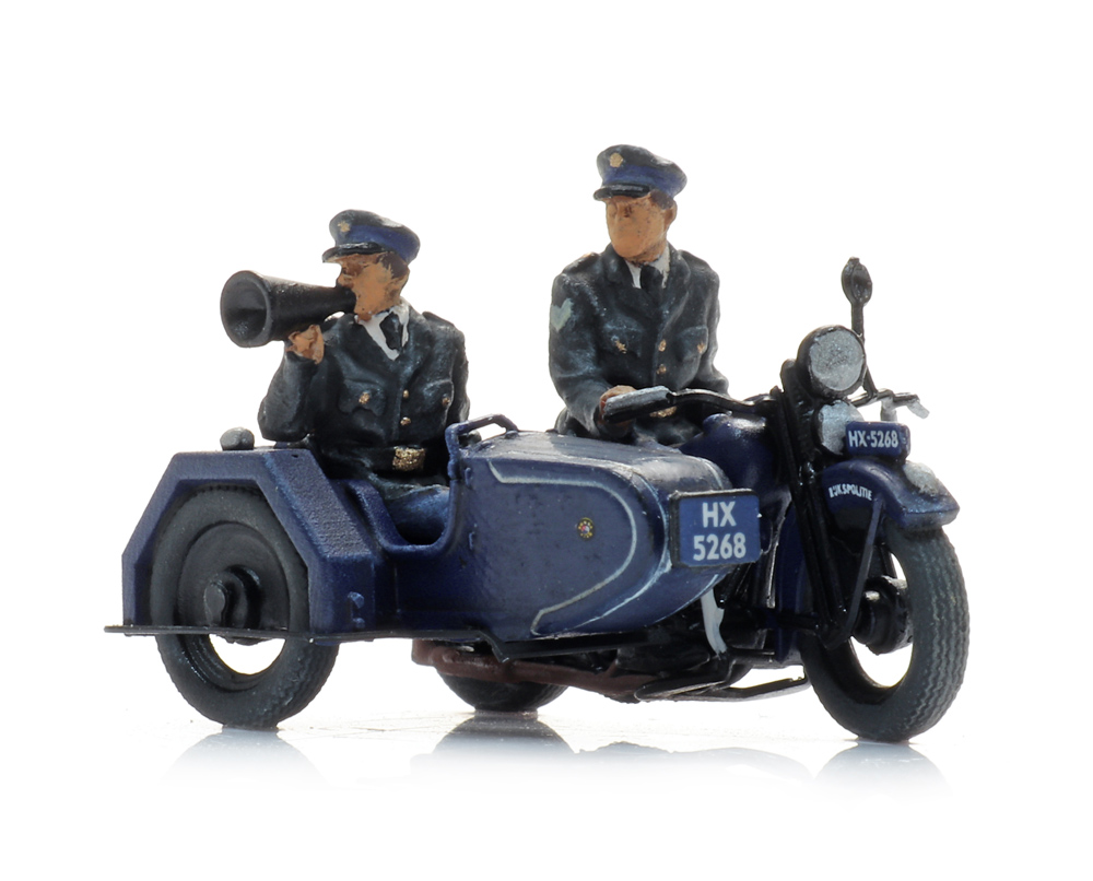 Reichspolizeimotorrad mit Beiwagen und 2 Figuren