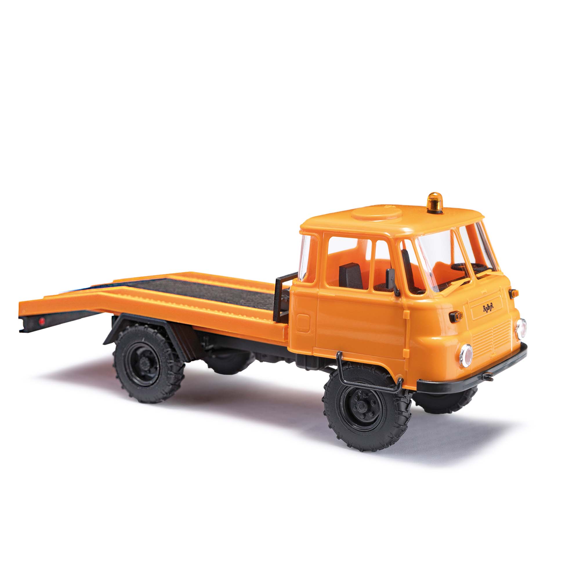 In den 70er und 80er Jahren wurden in der DDR einige Fahrzeuge aufgrund schwer erhältlicher Spezial- fahrzeuge in KFZ-Werkstätten selbst von PKW oder Lieferwagen zu Abschleppern umgebaut. Der umgebaute Robur LO 2002 A dient daher als Vorlage der Miniatur, die ebenfalls mit einer Winde ausgestattet ist, die beim Vorbild zum Aufladen defekter PKW oder auch Kleintransporter eingesetzt wurde.