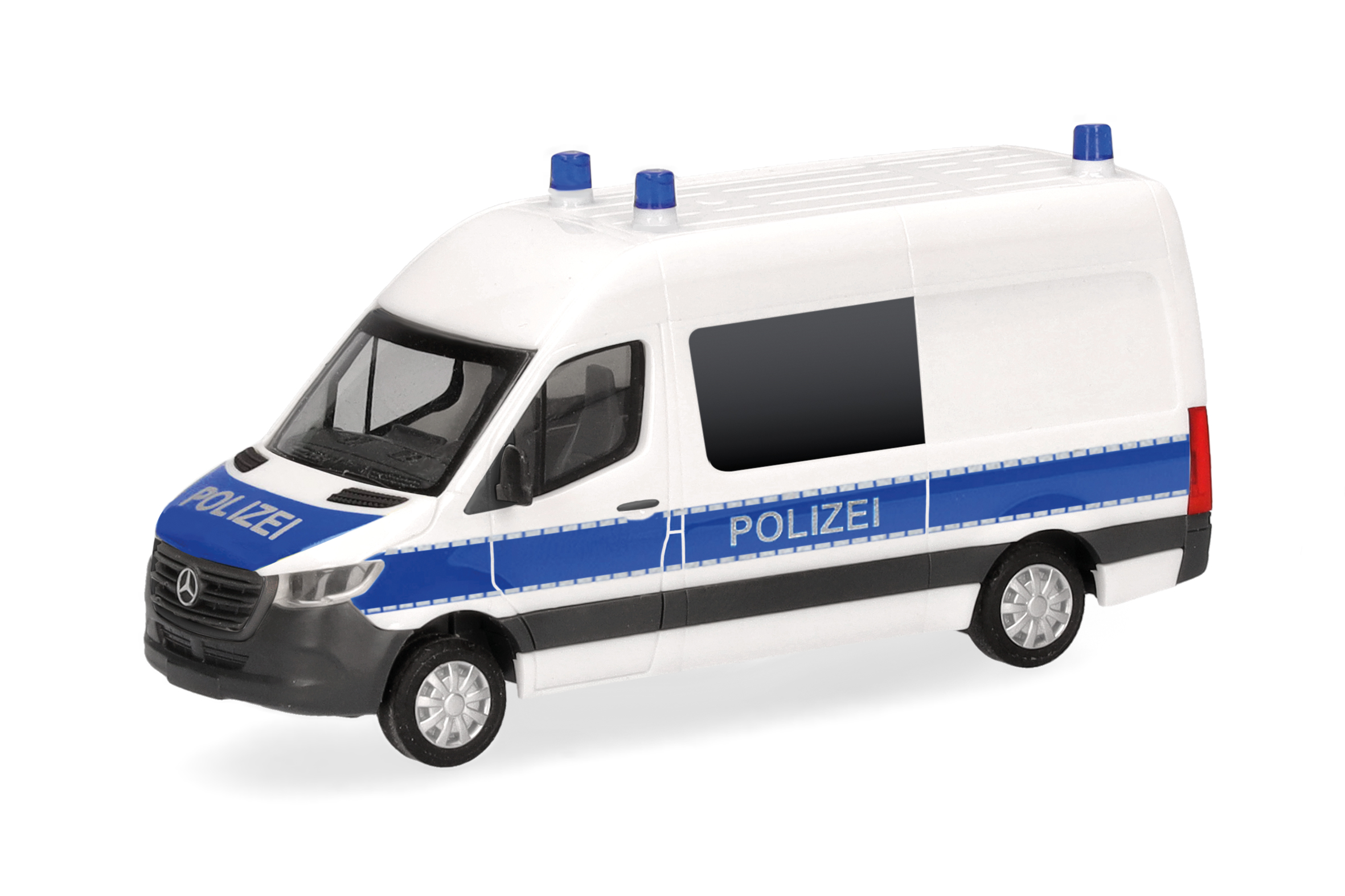 Die Brandermittler der Polizei in Nordrhein-Westfalen haben für Ihre Einsätze einen aktuellen Mercedes-Benz Sprinter als Halbbus. Das Herpa-Modell wird vorbildgerecht mit drei Rundumleuchten einmalig gefertigt.