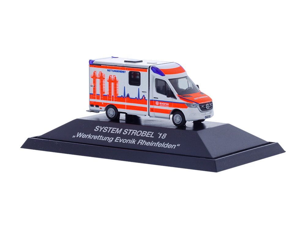 Rietze 76126 MB Sprinter Strobel RTW Evonik Rheinfeld